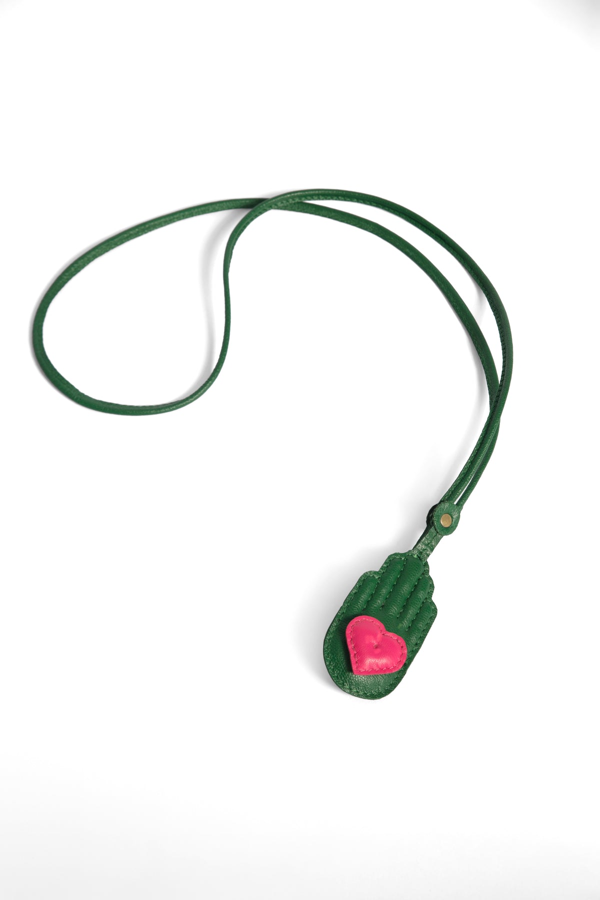 MRP Regular price Rs. 4,500.00 Save Liquid error (snippets/product-template line 132): Computation results in '-Infinity'%Inspired by Siddhartha Bansal’s signature Hamsa Hand logo, this handcrafted genuine leather charm reinterprets the iconic symbol in a playful sculptural form. Finished with a vibrant heart detail and a slim strap, it can be worn as a neck charm or styled on a bag, adding a touch of protection, positivity, and signature Siddhartha Bansal charm to everyday accessories.