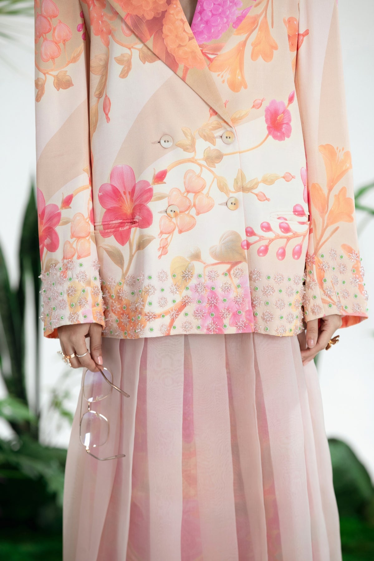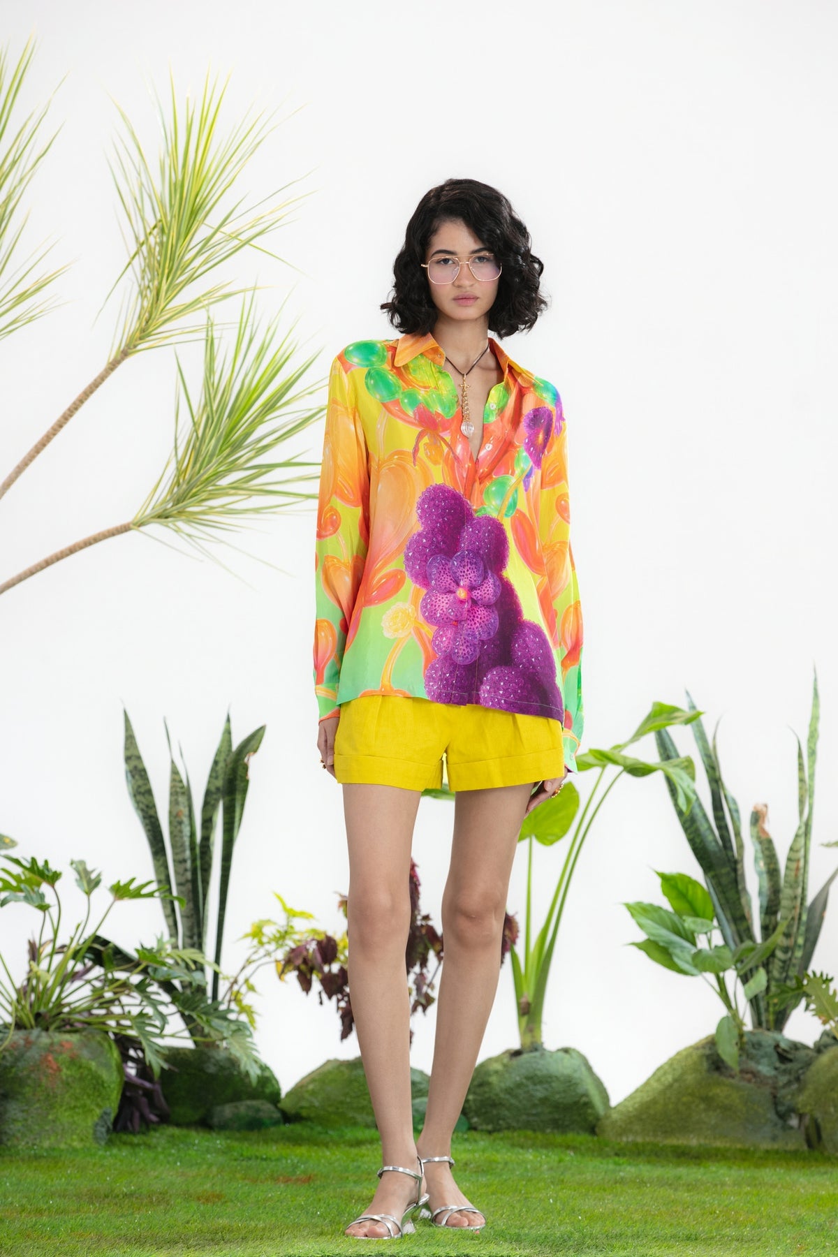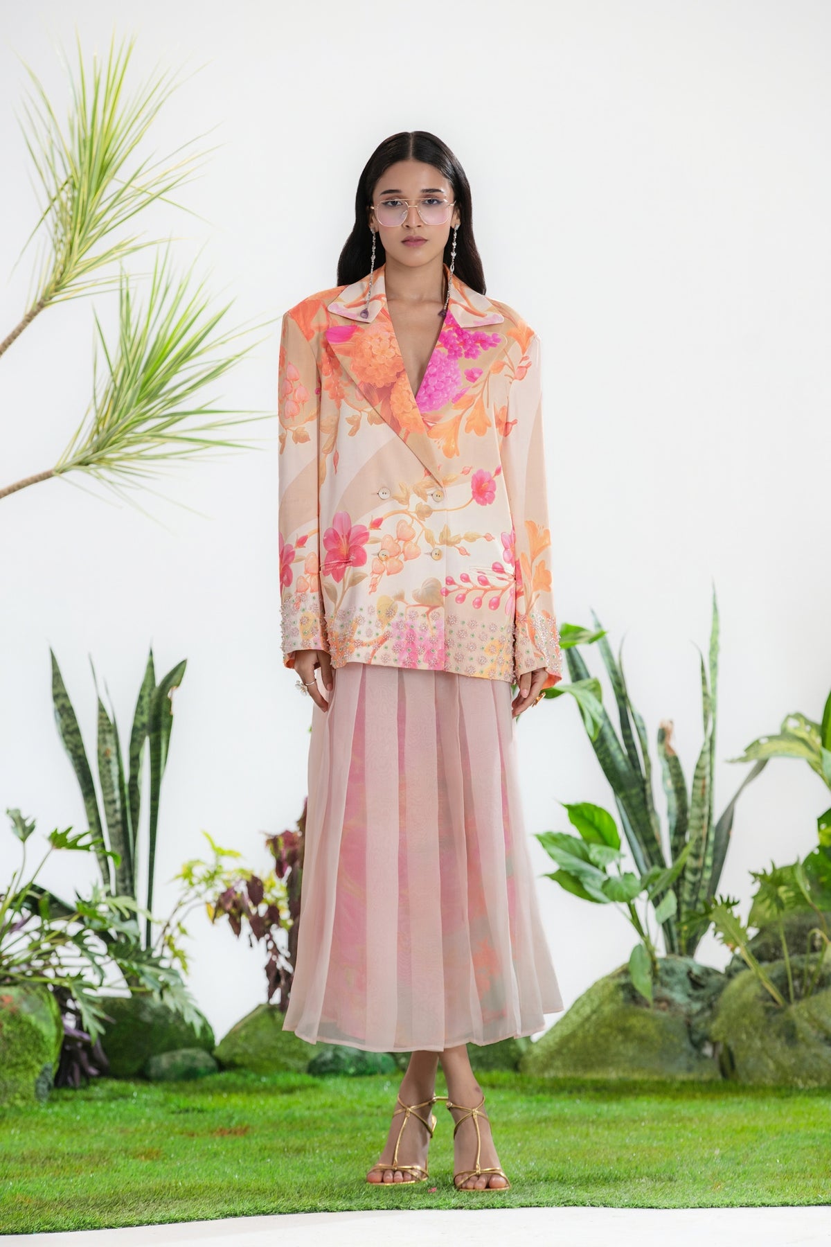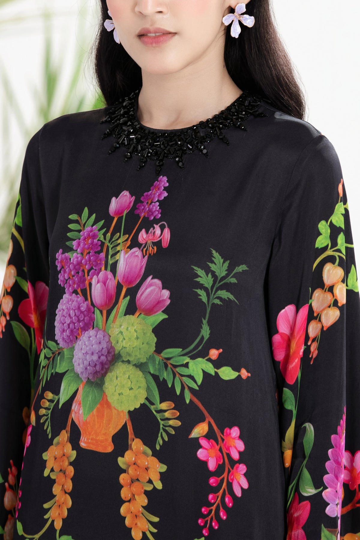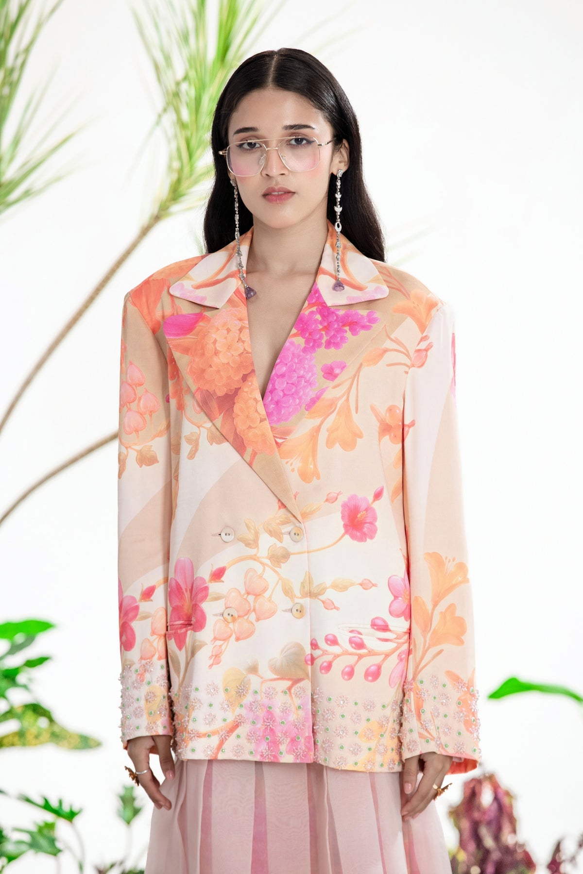 Elevate Your Wardrobe With This Statement Ensemble Featuring An Oversized Black Blazer Paired With Matching Satin-Linen Shorts. The Set Is Adorned With Bold Prints And Intricate Embroidery, Blending Contemporary Tailoring With Artisanal Detailing For A Striking, Fashion-Forward Look. Layered Underneath, A Playful Cow-Print Poplin Shirt Adds Contrast And Personality, Making The Outfit Perfect For Stylish Streetwear, Casual Events, Or Standout Occasions. A Versatile, Eye-Catching Set That Balances Structure, Artistry, And Playful Charm.