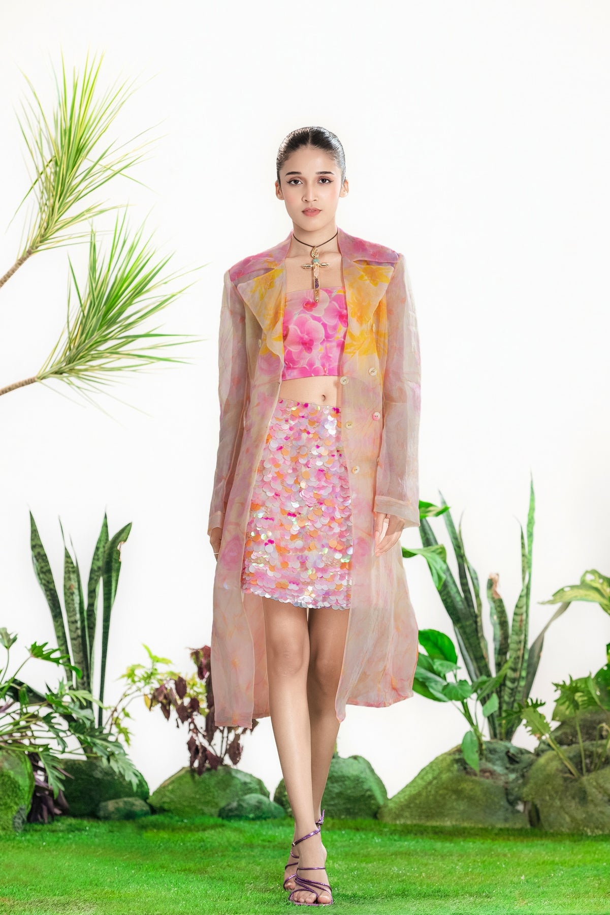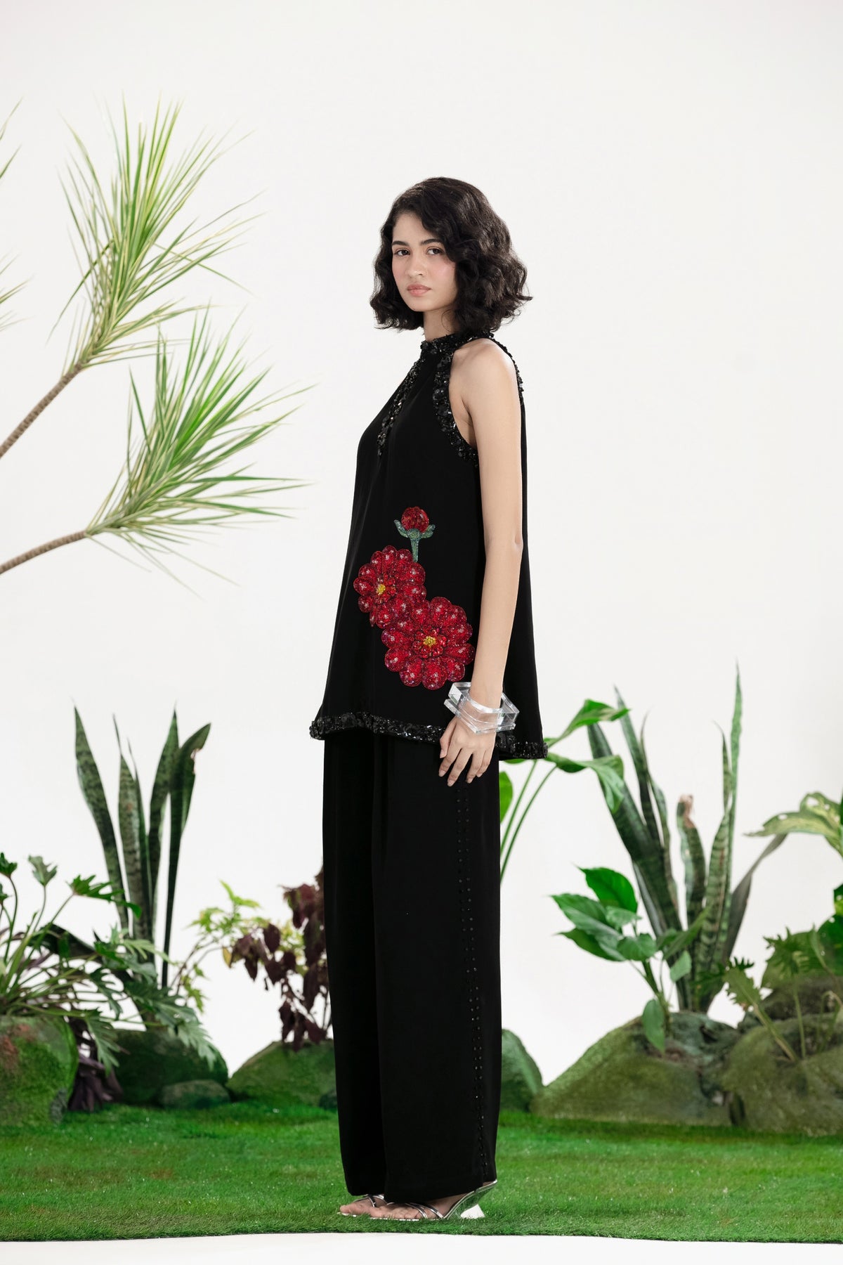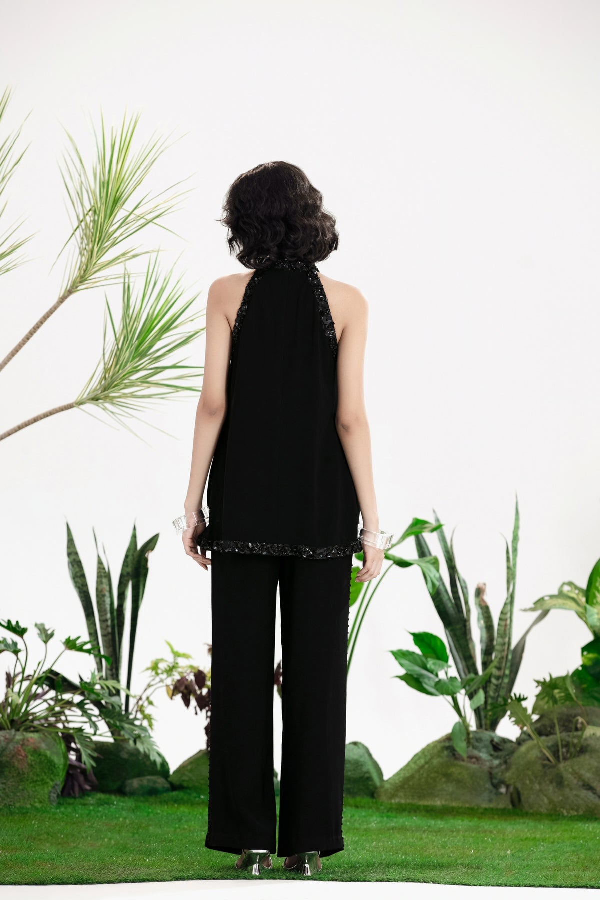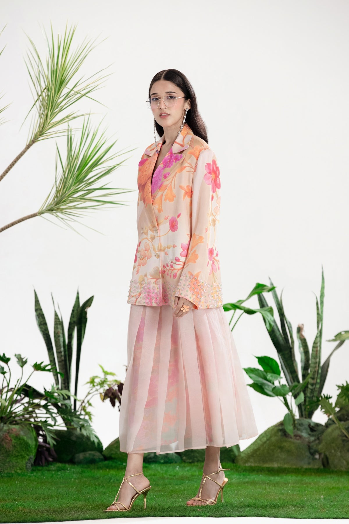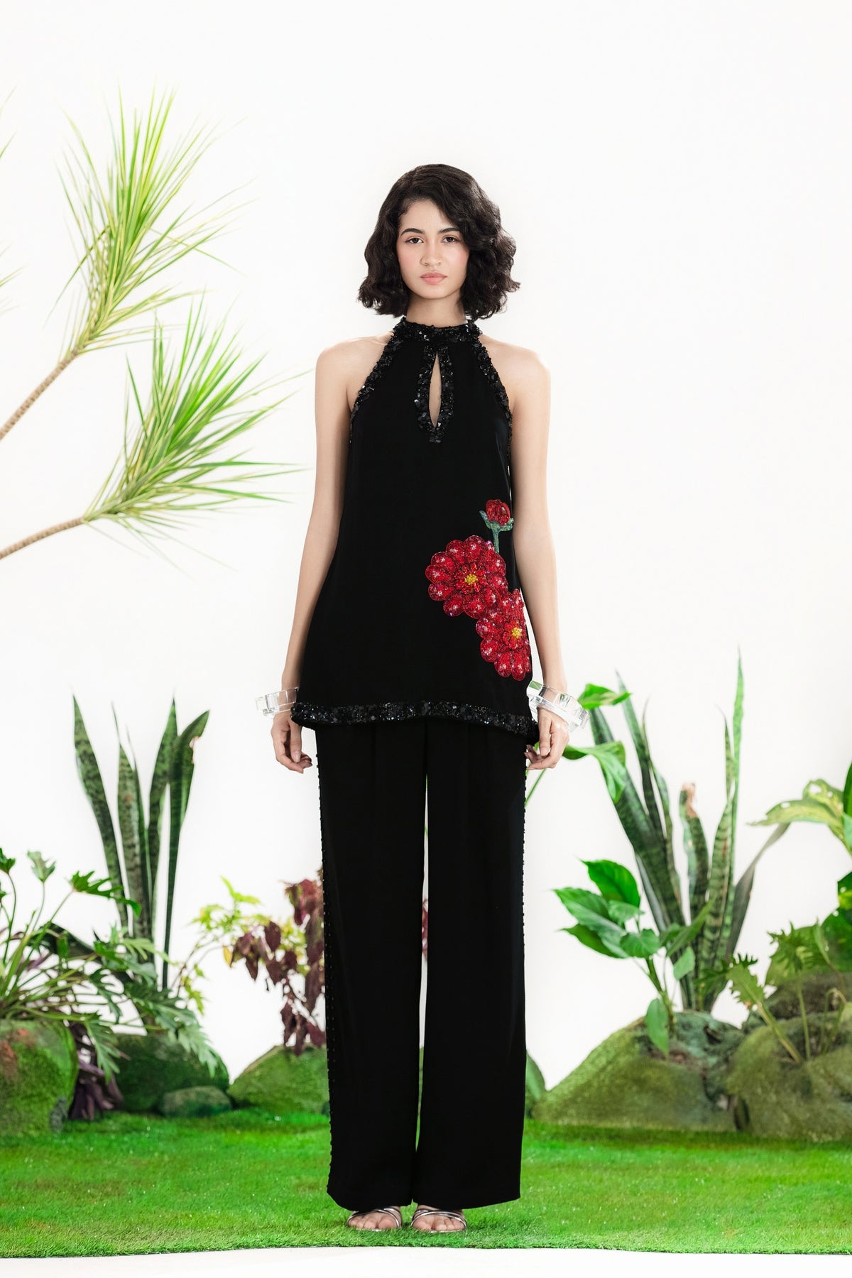 Elevate Your Wardrobe With This Statement Ensemble Featuring An Oversized Black Blazer Paired With Matching Satin-Linen Shorts. The Set Is Adorned With Bold Prints And Intricate Embroidery, Blending Contemporary Tailoring With Artisanal Detailing For A Striking, Fashion-Forward Look. Layered Underneath, A Playful Cow-Print Poplin Shirt Adds Contrast And Personality, Making The Outfit Perfect For Stylish Streetwear, Casual Events, Or Standout Occasions. A Versatile, Eye-Catching Set That Balances Structure, Artistry, And Playful Charm.