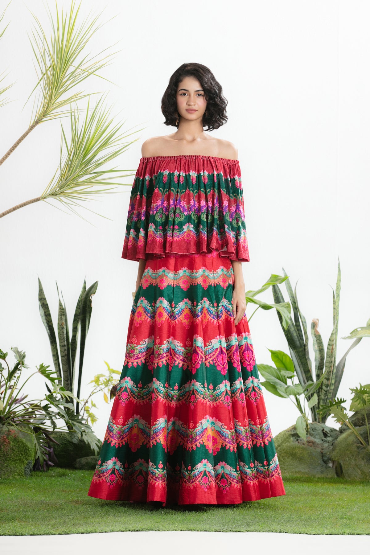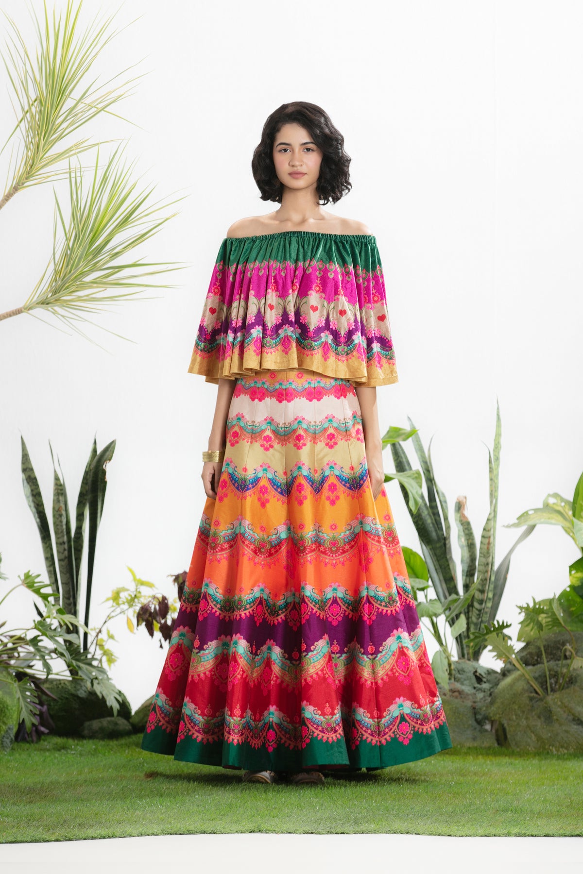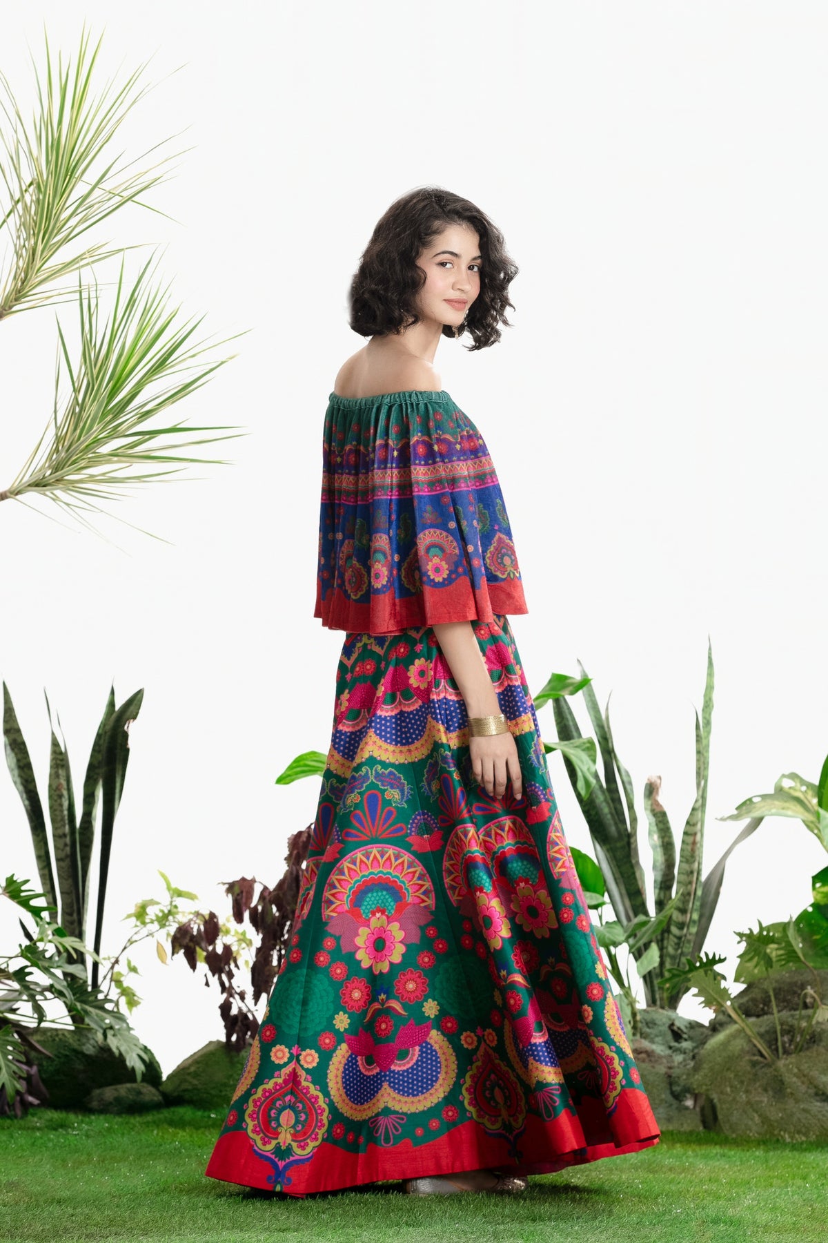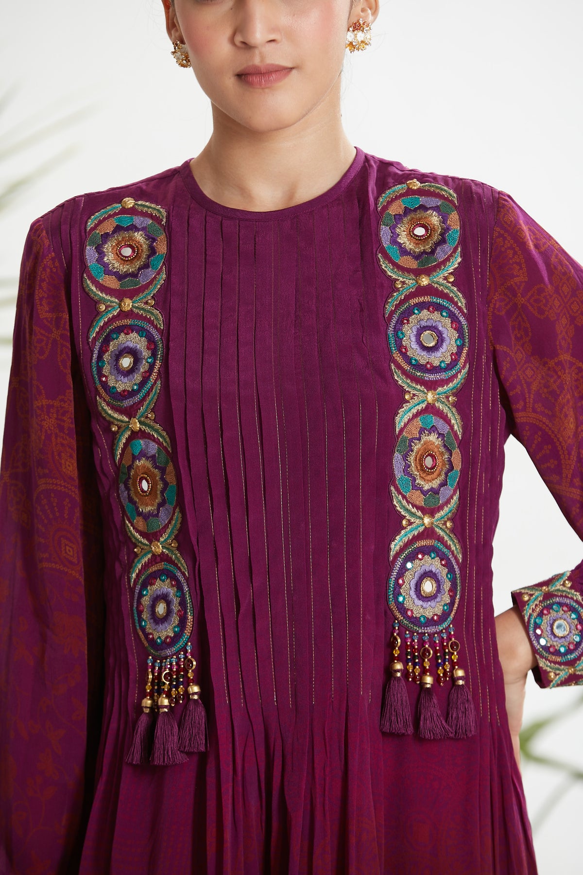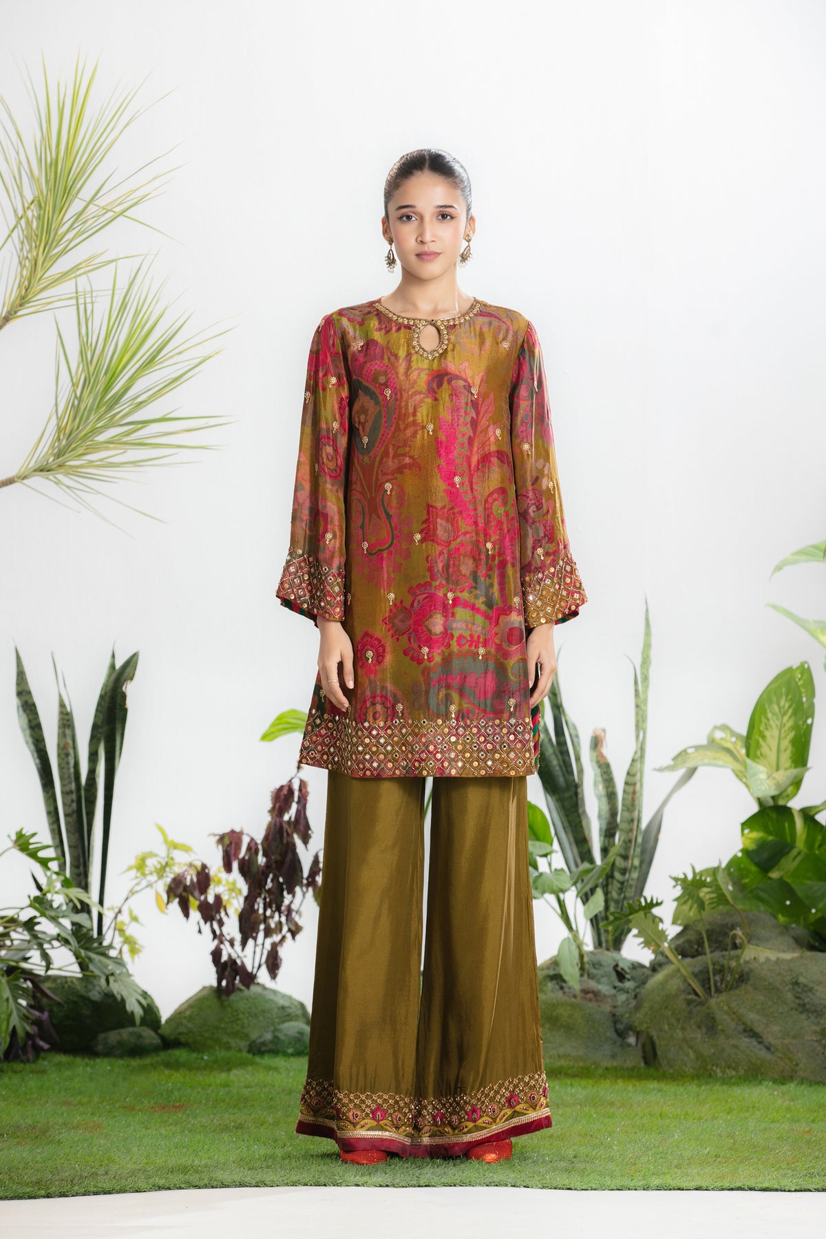 Multi color ikat print kurta set, designed with pintuck detailing on the front, threadwork on the collar, and lace detailing along the hem.Perfect for casual festive gatherings, family get-togethers, or elegant daytime outings.