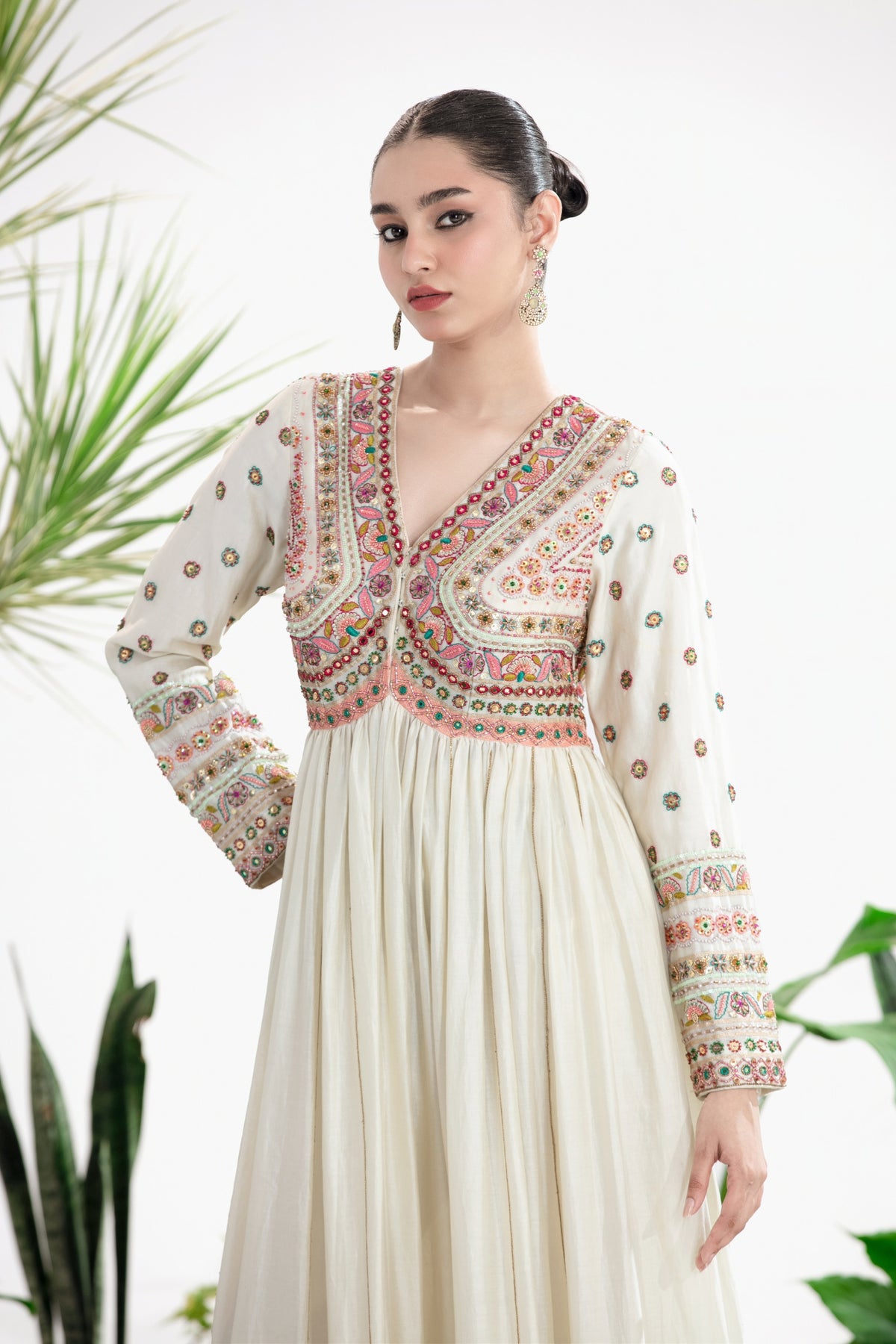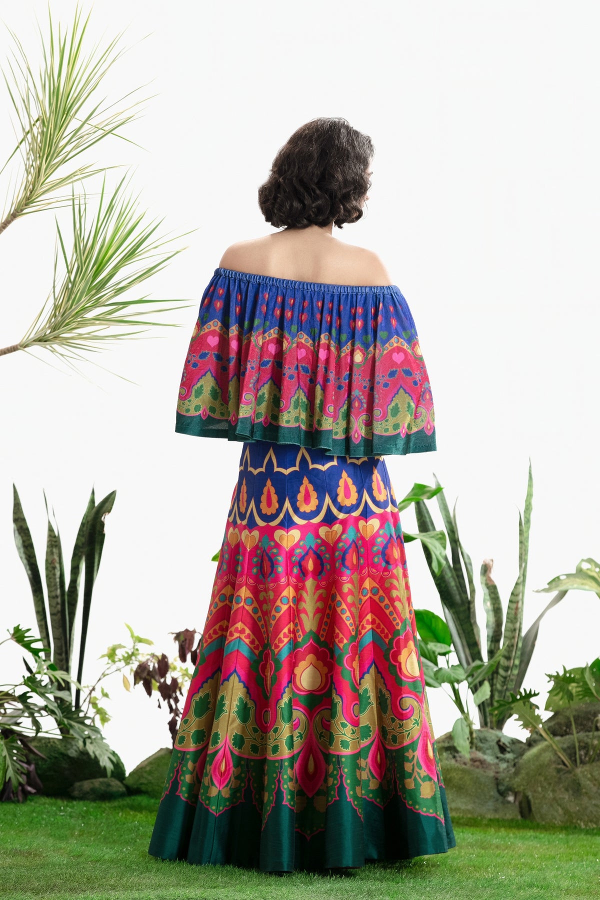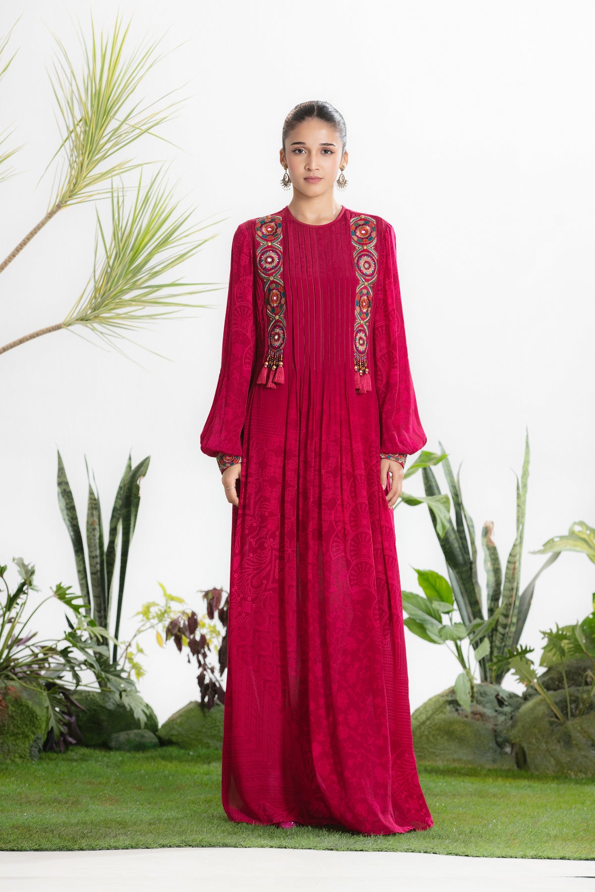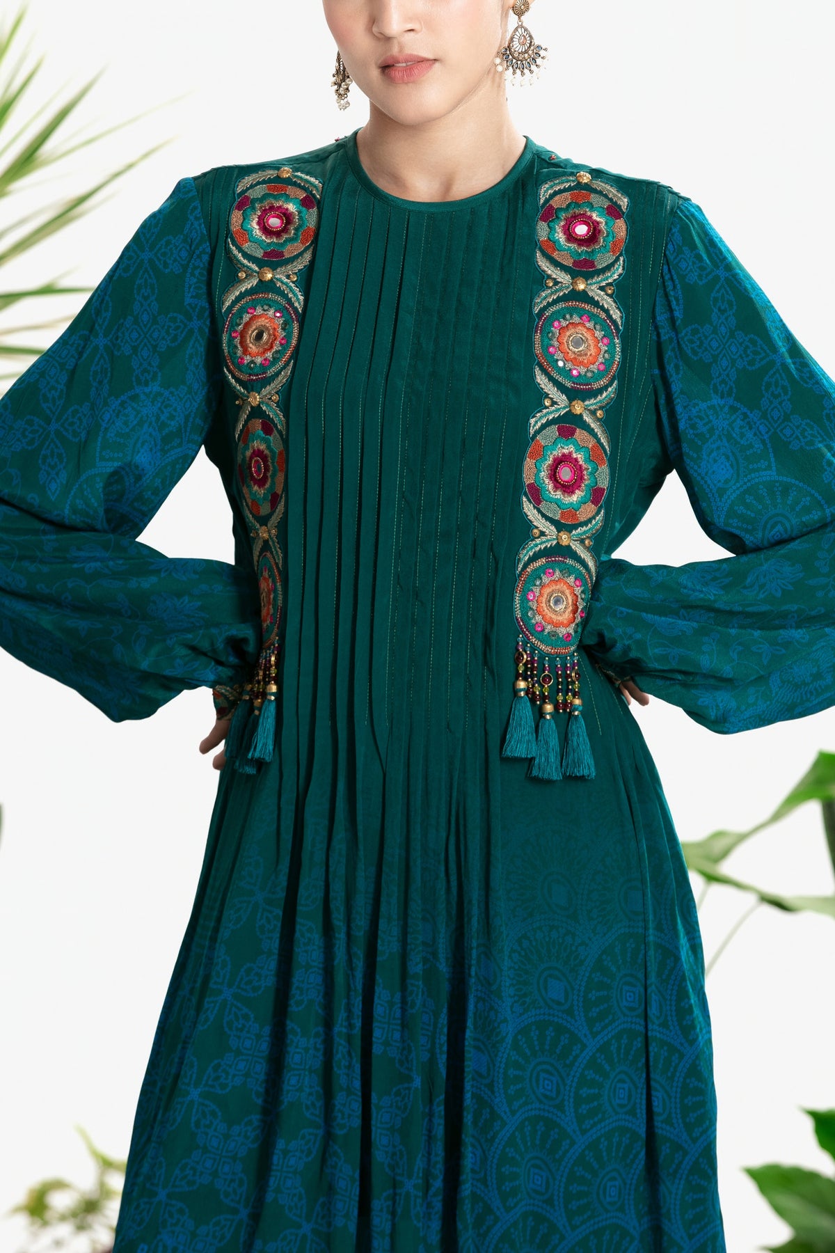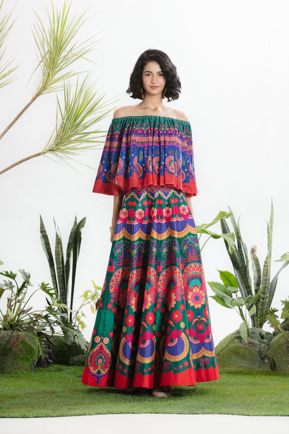 Multi color ikat print kurta set, designed with pintuck detailing on the front, threadwork on the collar, and lace detailing along the hem.Perfect for casual festive gatherings, family get-togethers, or elegant daytime outings.