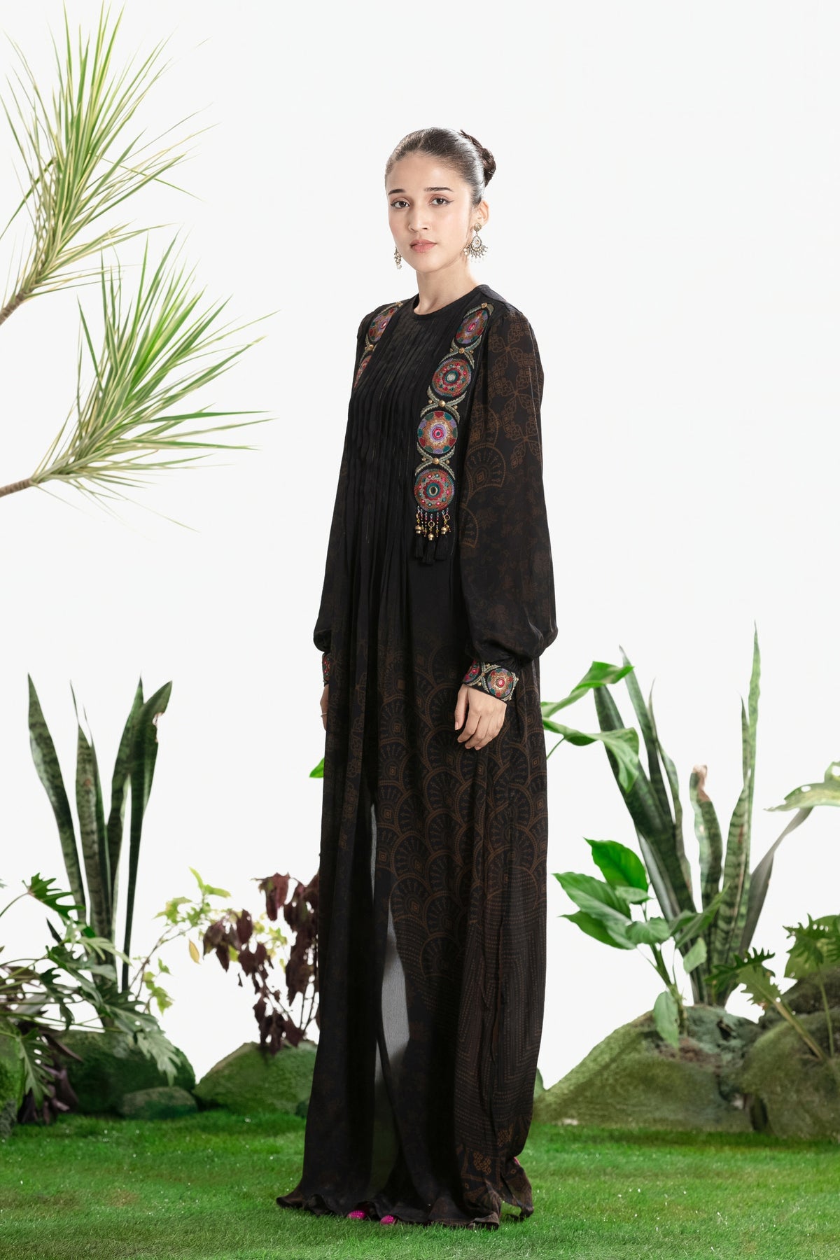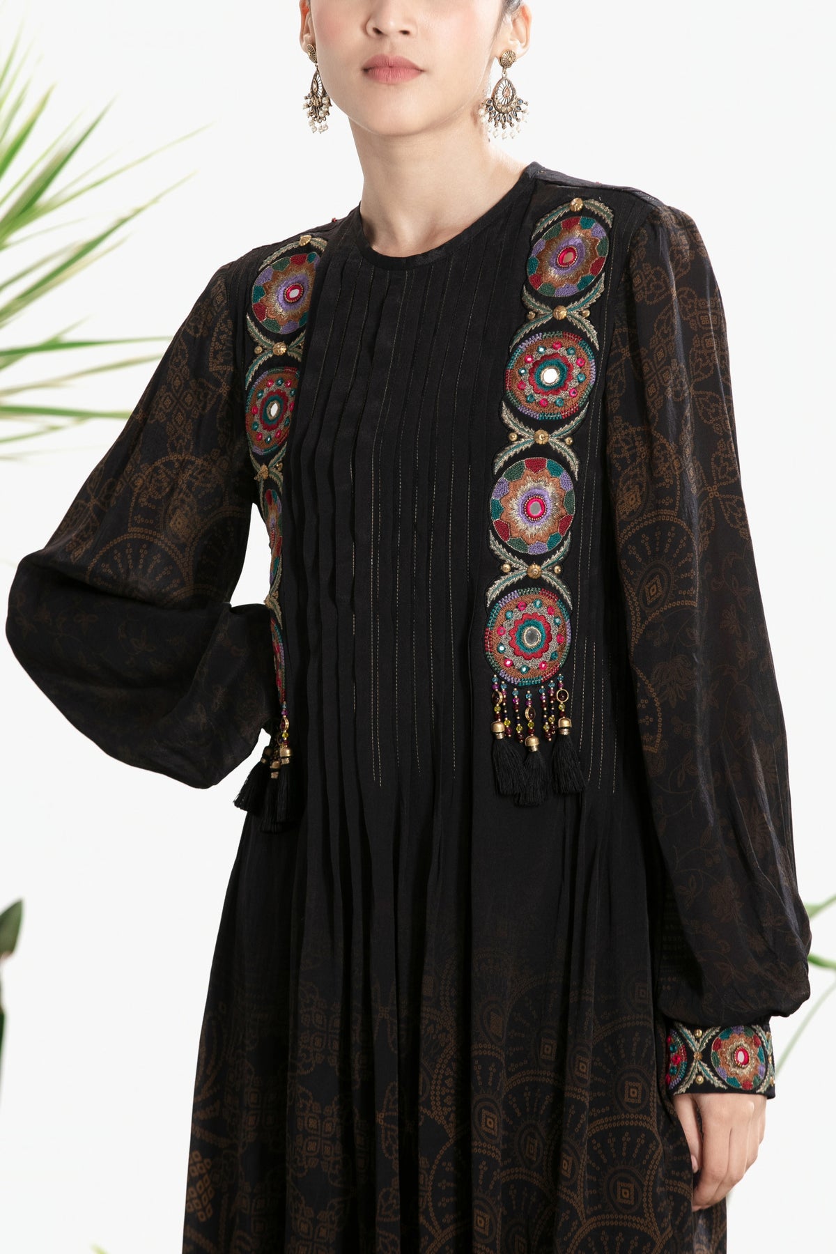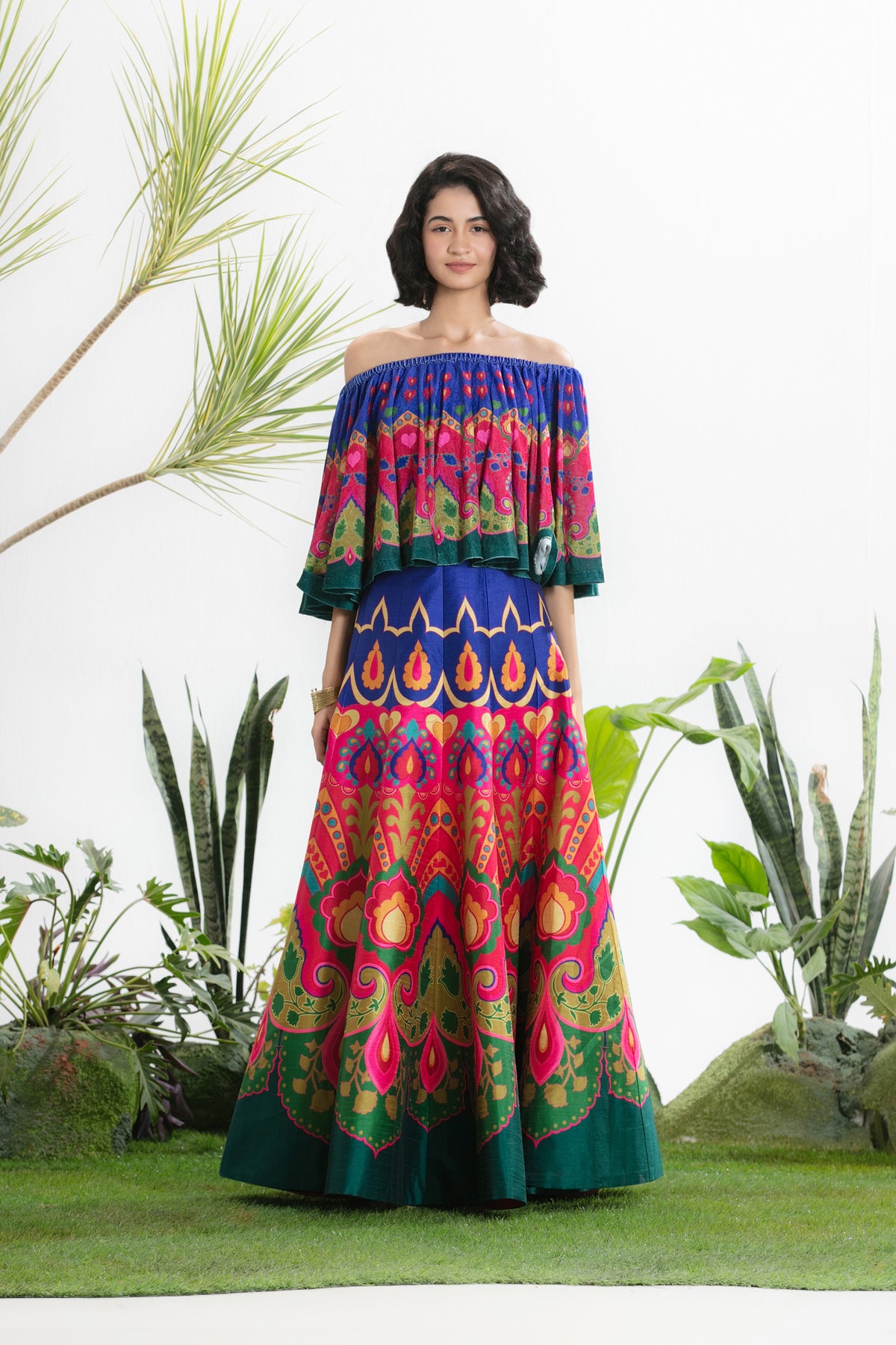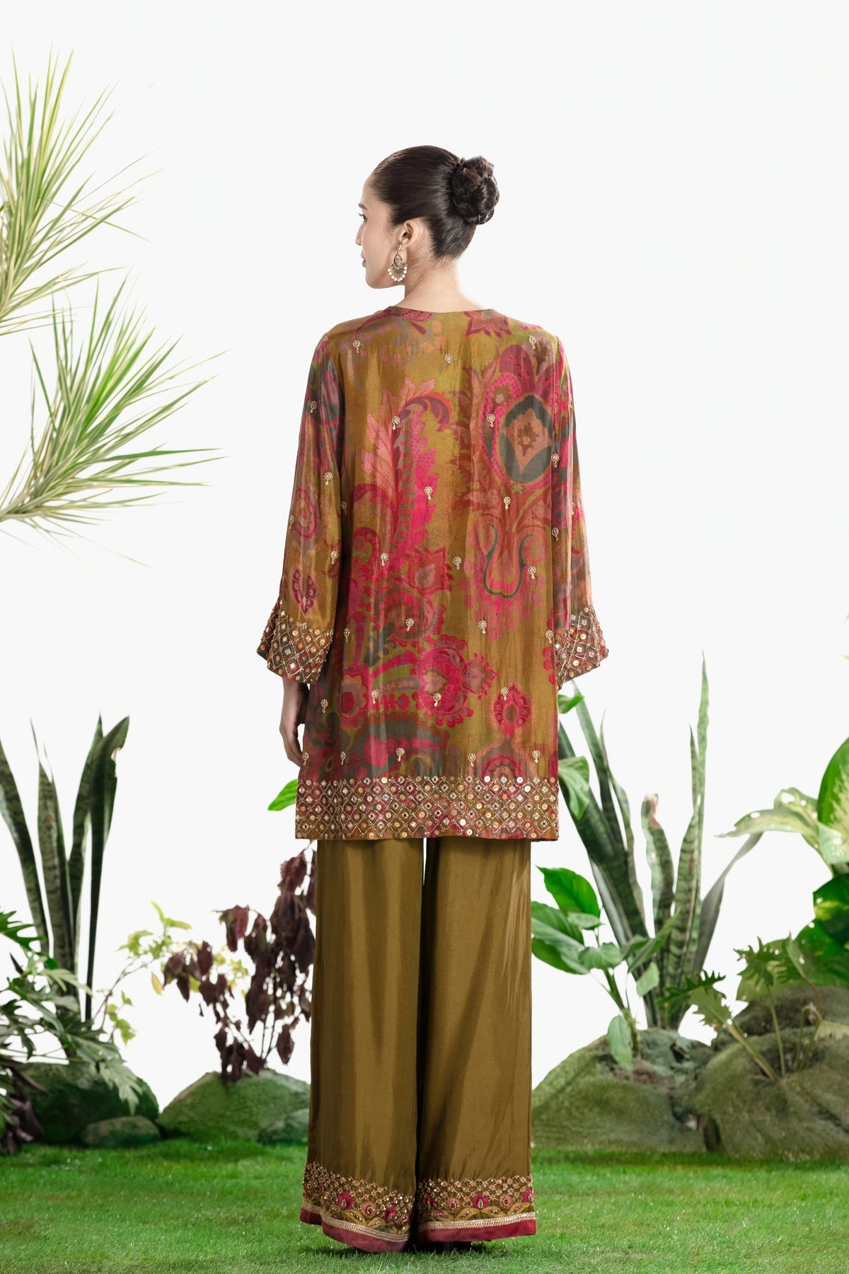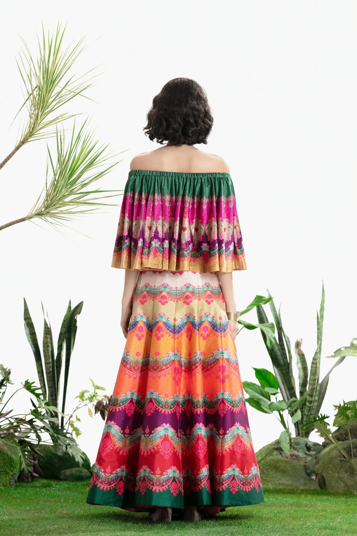 Multi color ikat print kurta set, designed with pintuck detailing on the front, threadwork on the collar, and lace detailing along the hem.Perfect for casual festive gatherings, family get-togethers, or elegant daytime outings.