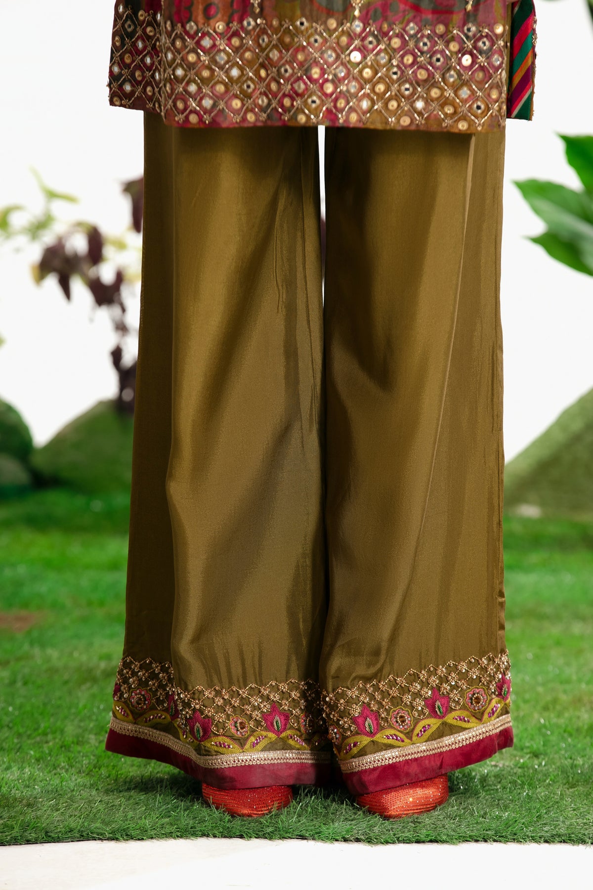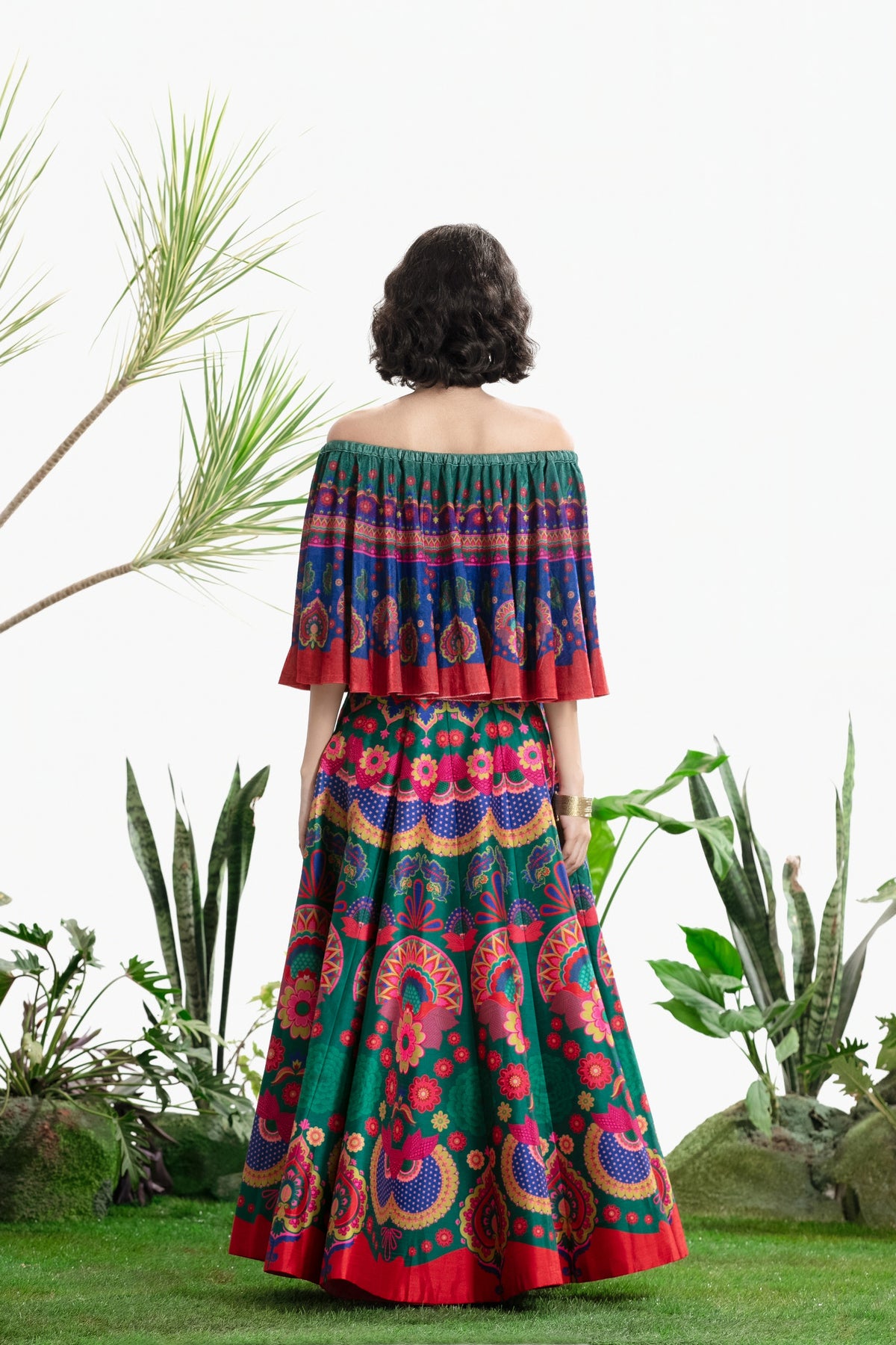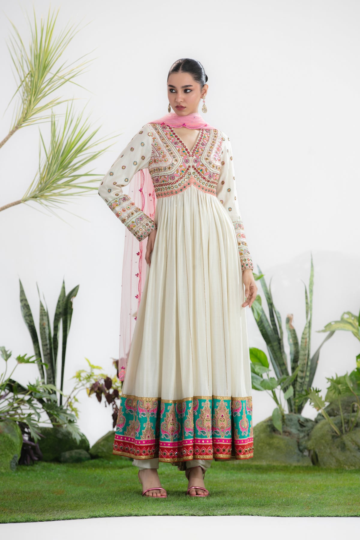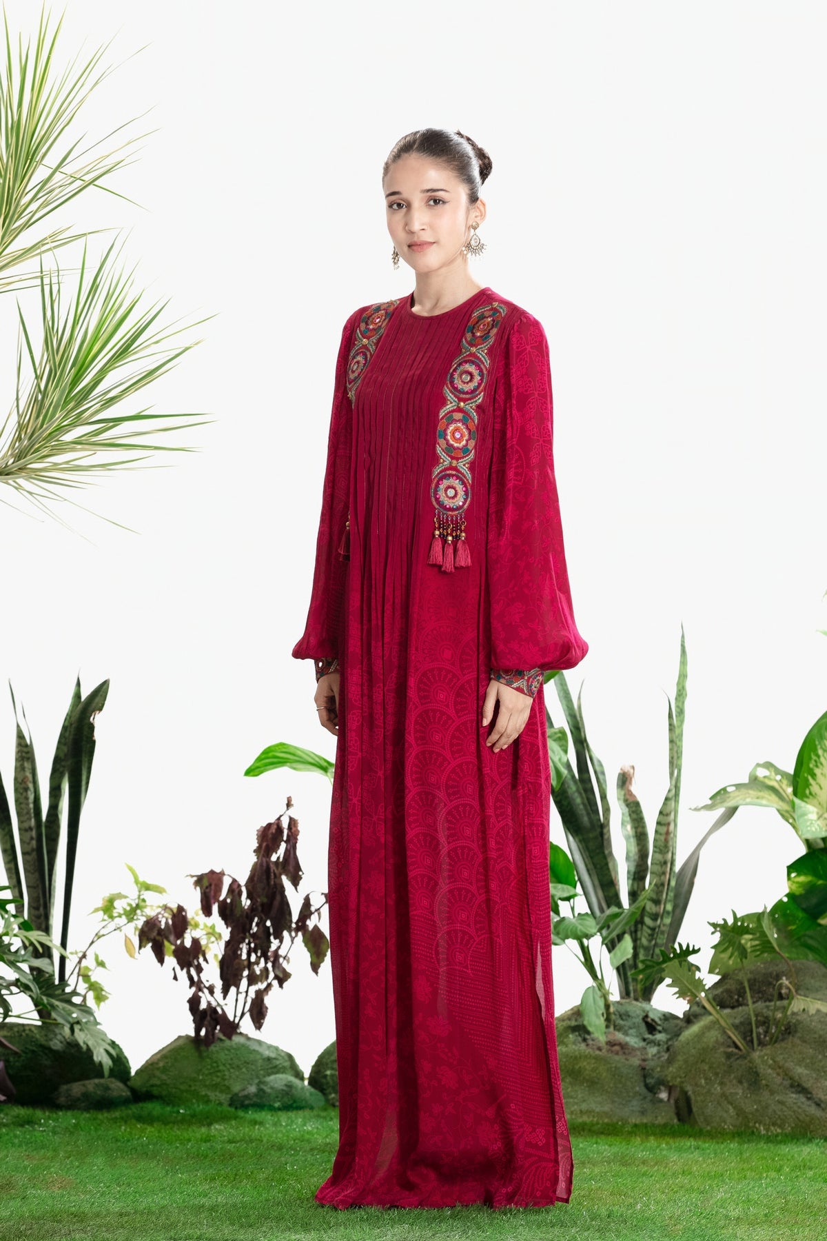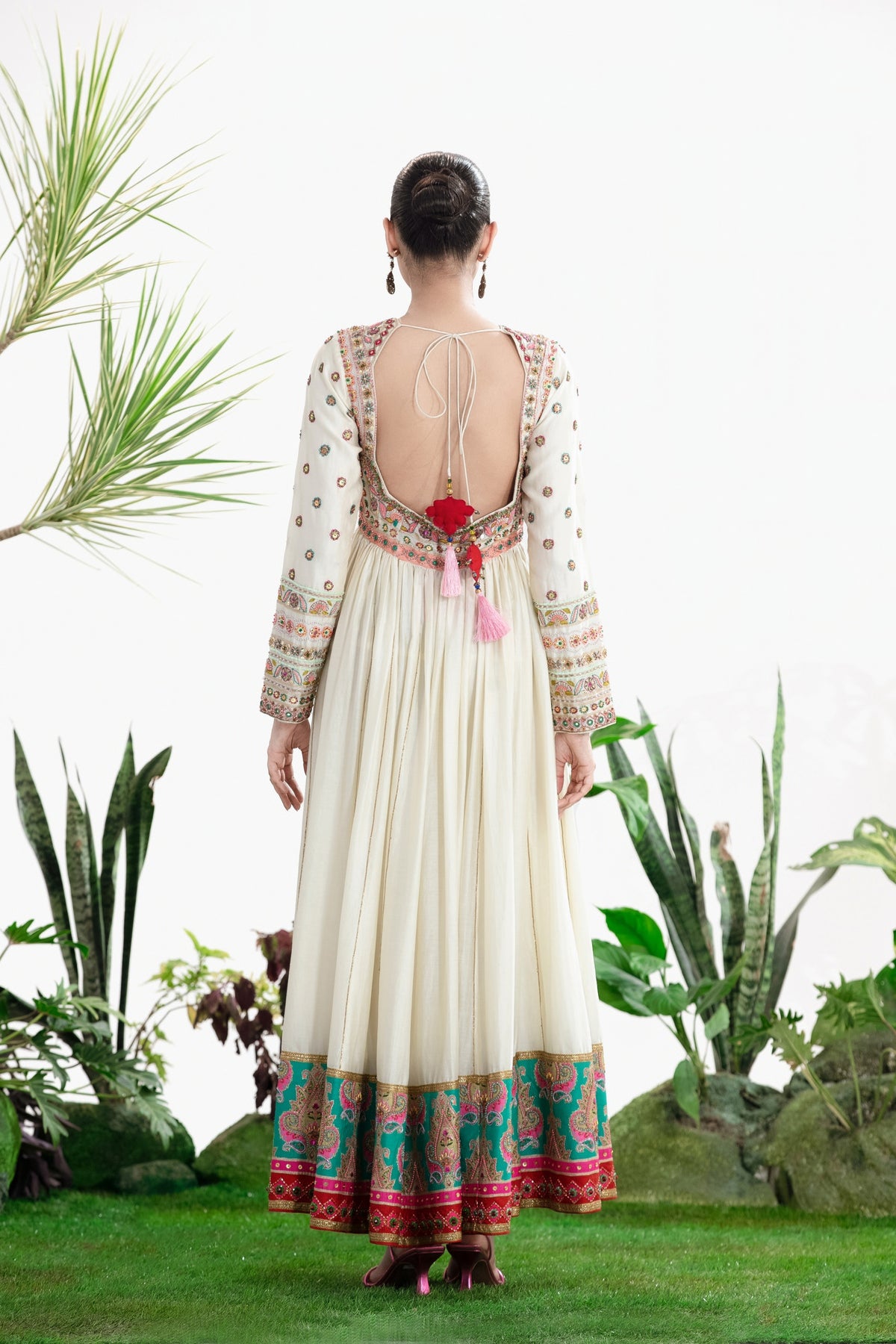 Multi color ikat print kurta set, designed with pintuck detailing on the front, threadwork on the collar, and lace detailing along the hem.Perfect for casual festive gatherings, family get-togethers, or elegant daytime outings.