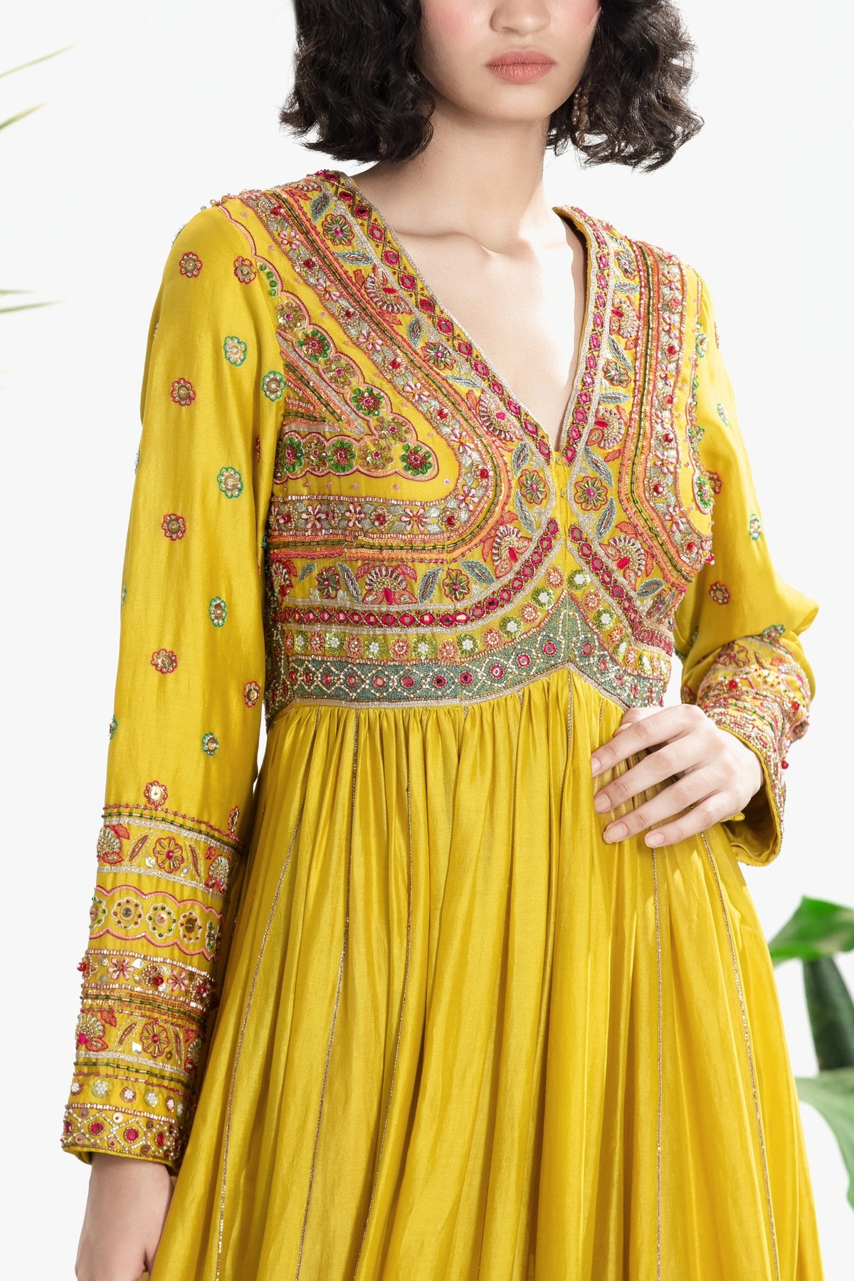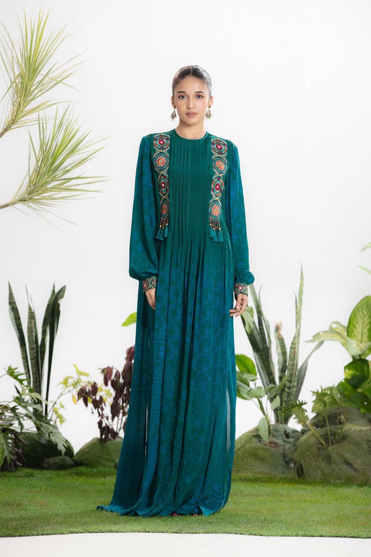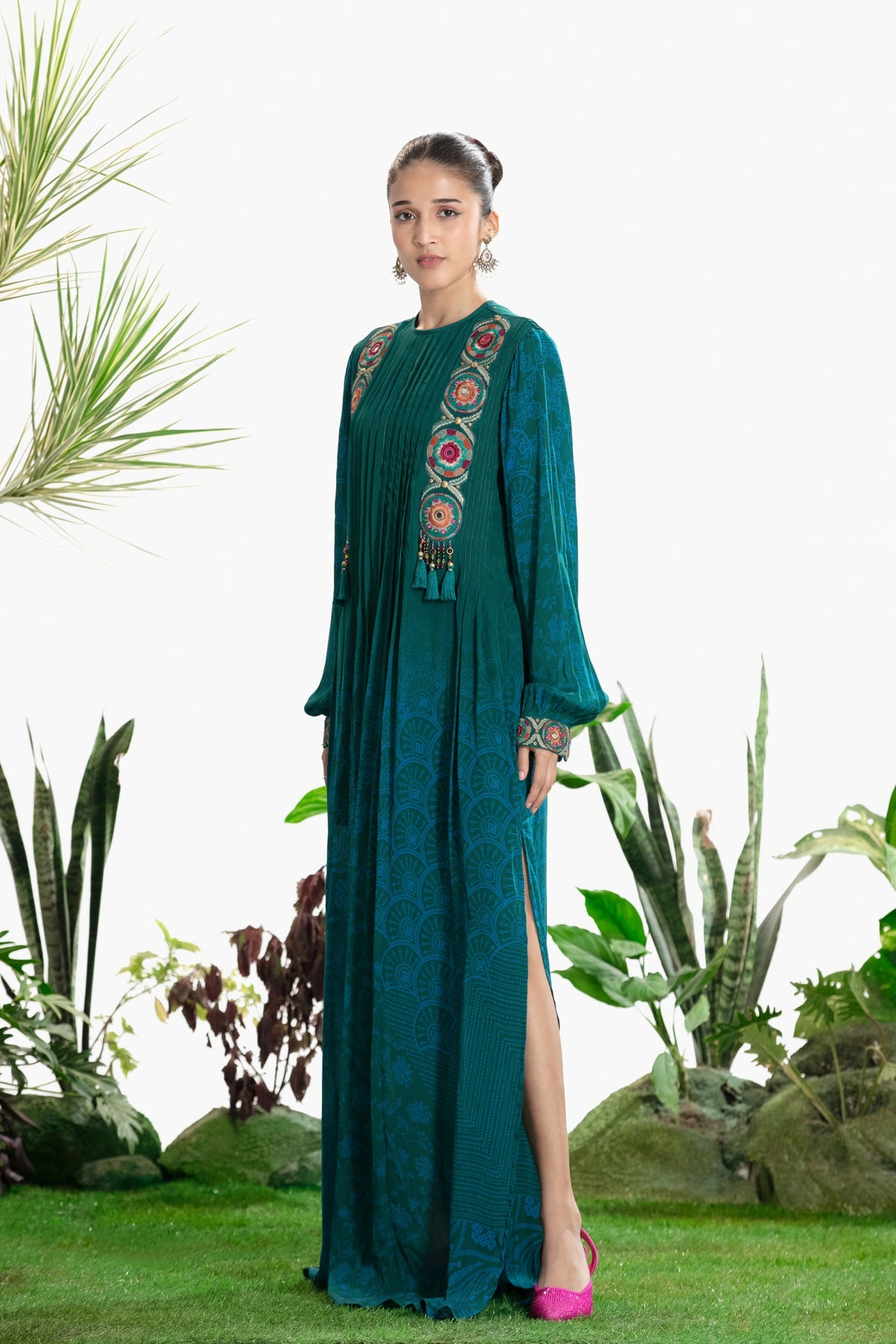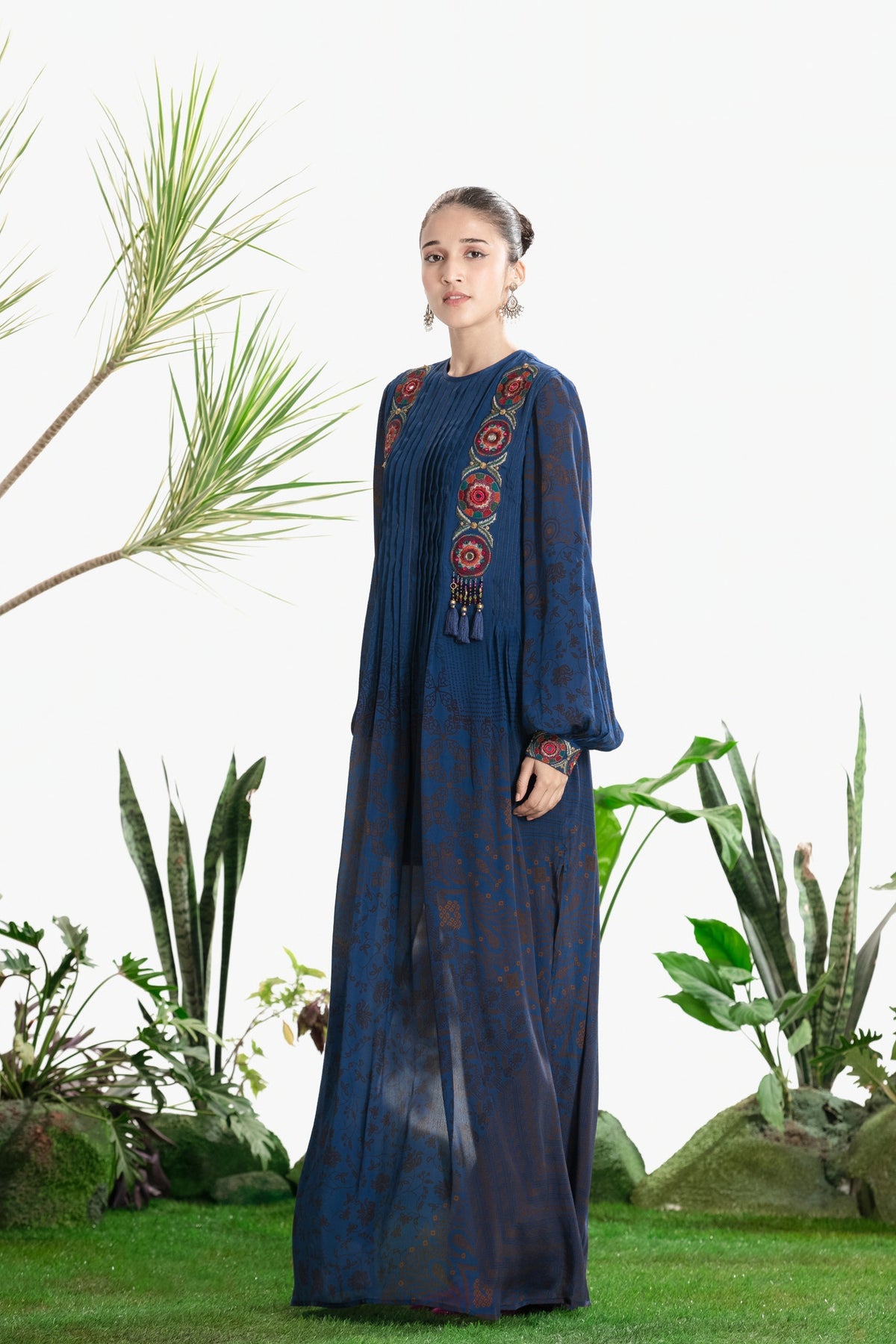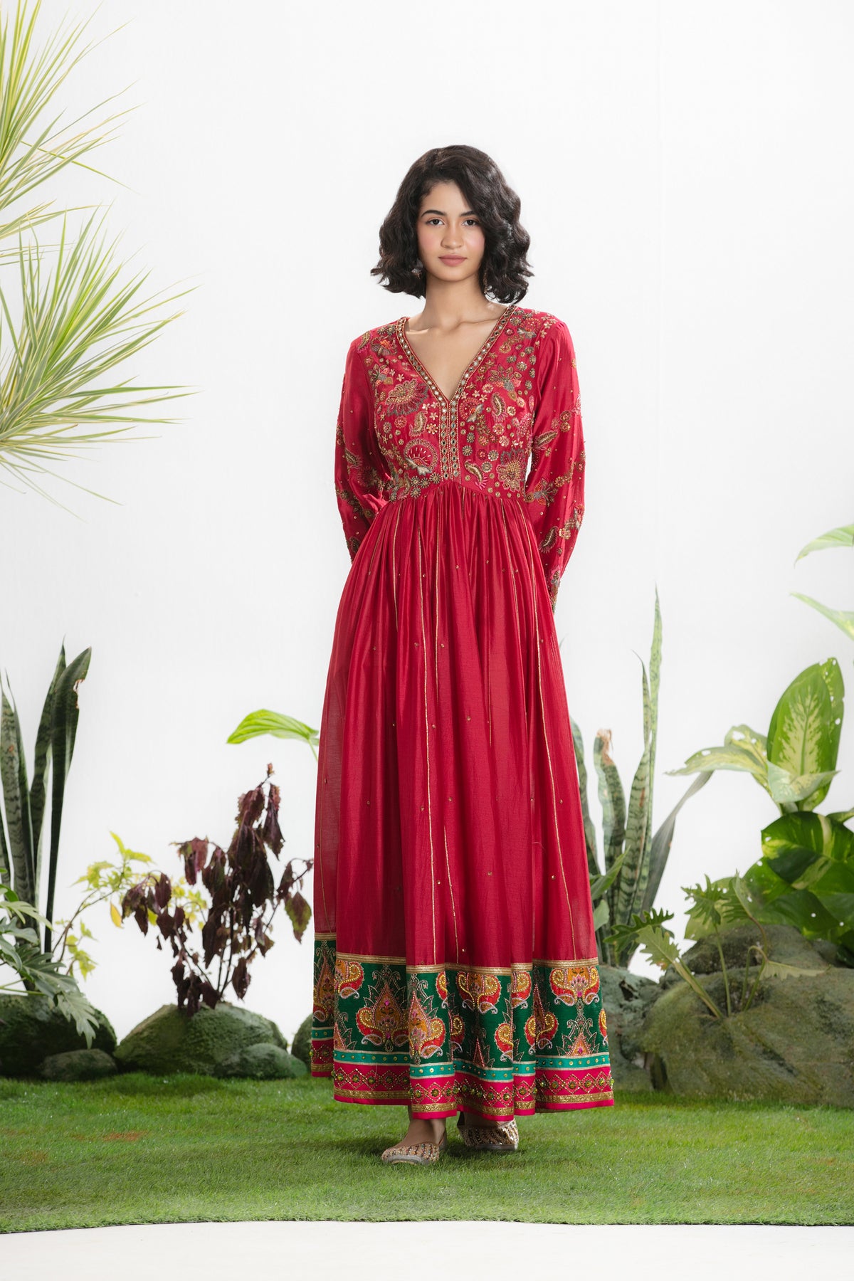 Multi color ikat print kurta set, designed with pintuck detailing on the front, threadwork on the collar, and lace detailing along the hem.Perfect for casual festive gatherings, family get-togethers, or elegant daytime outings.