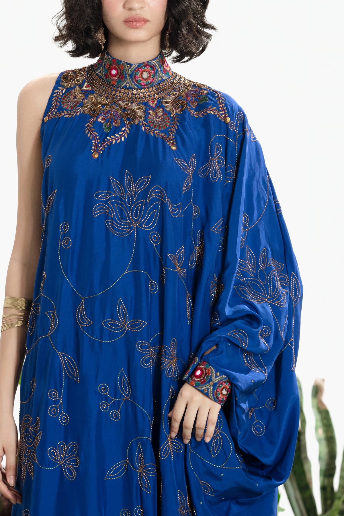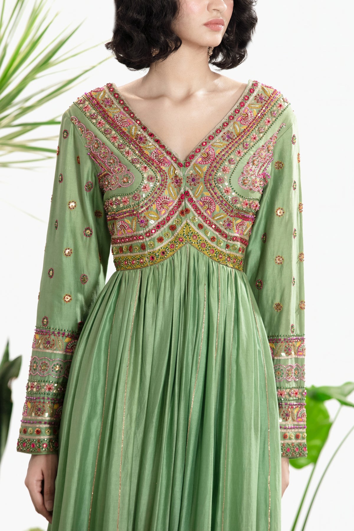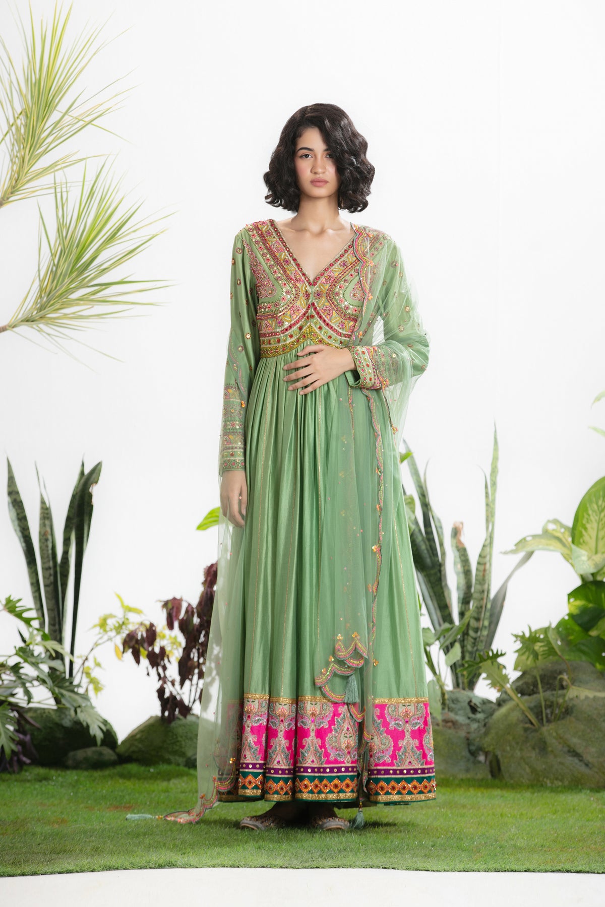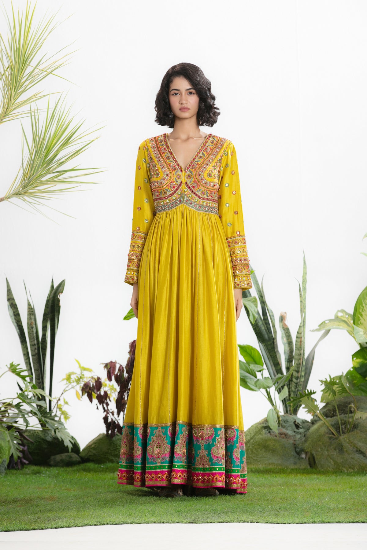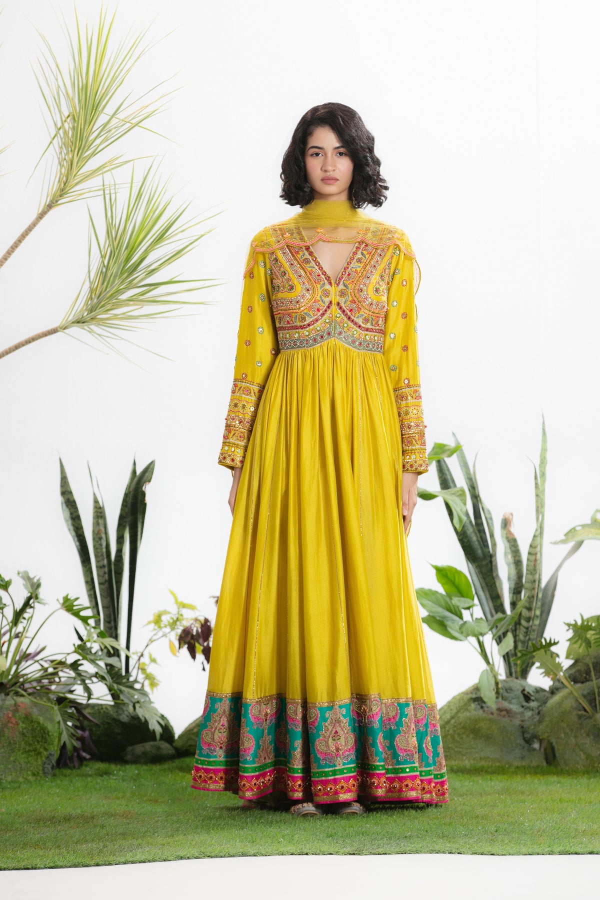 Multi color ikat print kurta set, designed with pintuck detailing on the front, threadwork on the collar, and lace detailing along the hem.Perfect for casual festive gatherings, family get-togethers, or elegant daytime outings.