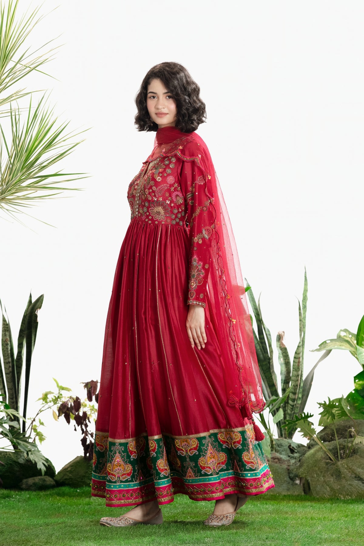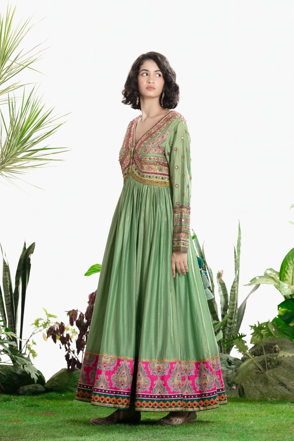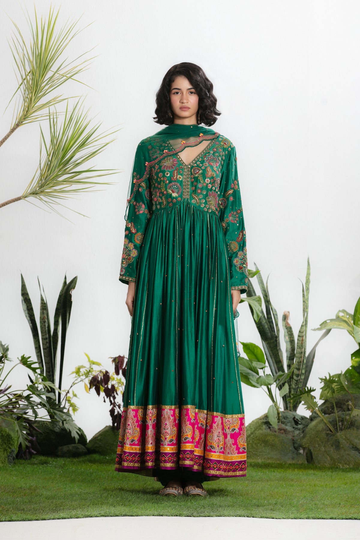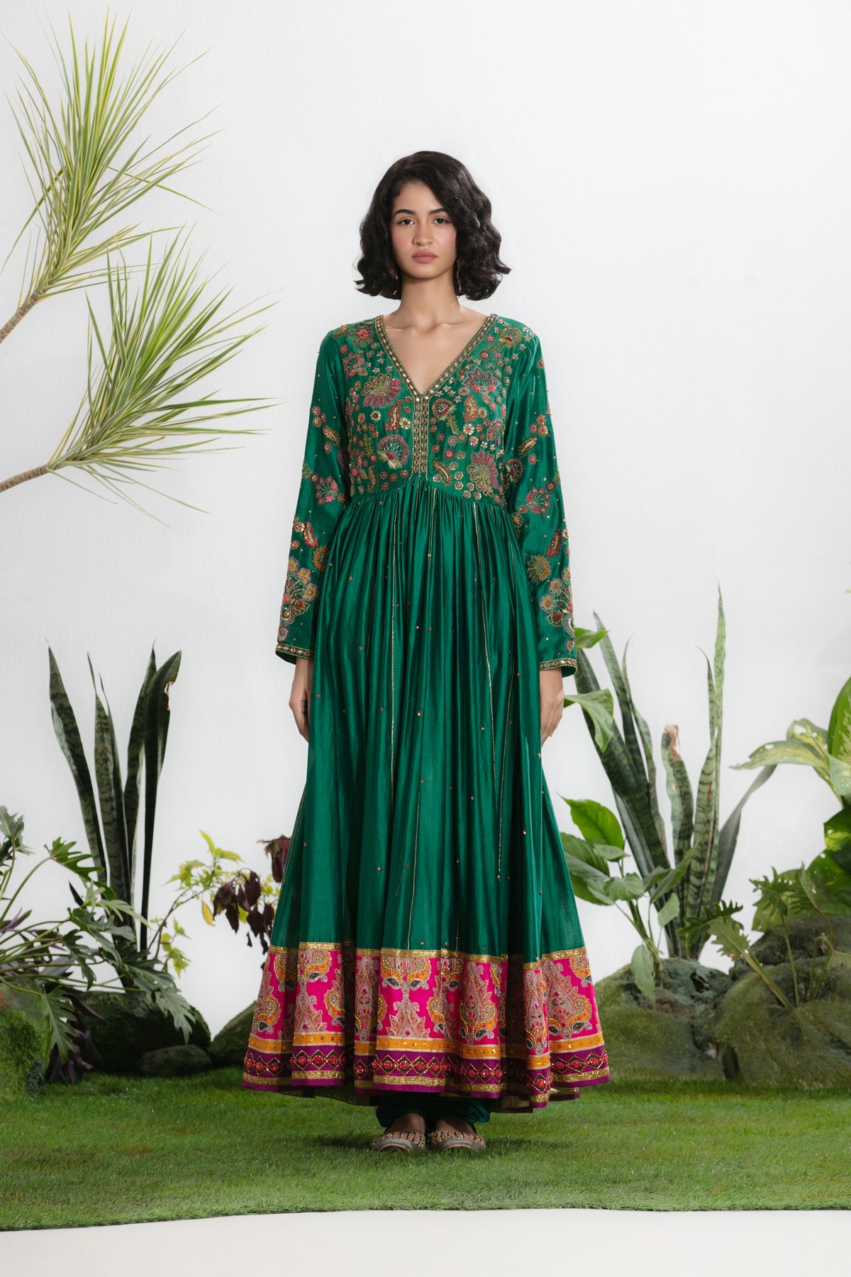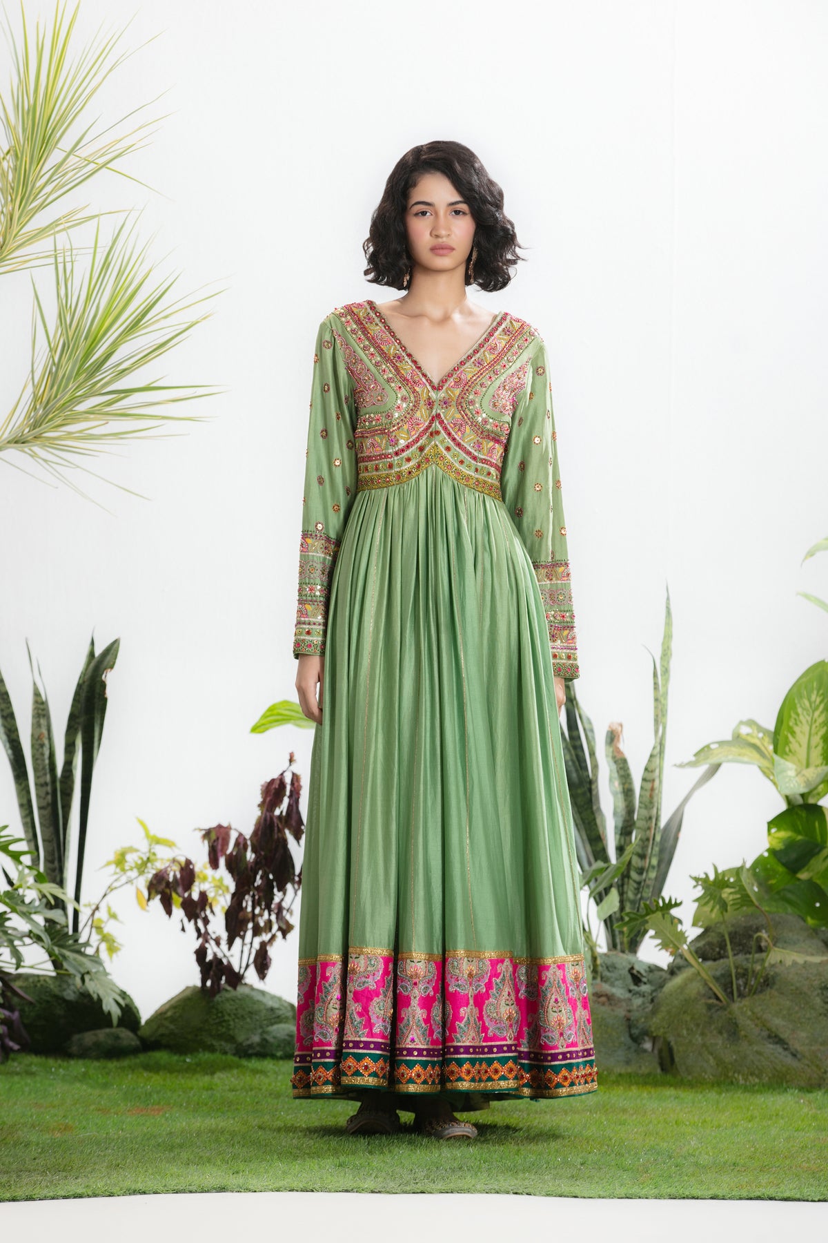 Multi color ikat print kurta set, designed with pintuck detailing on the front, threadwork on the collar, and lace detailing along the hem.Perfect for casual festive gatherings, family get-togethers, or elegant daytime outings.
