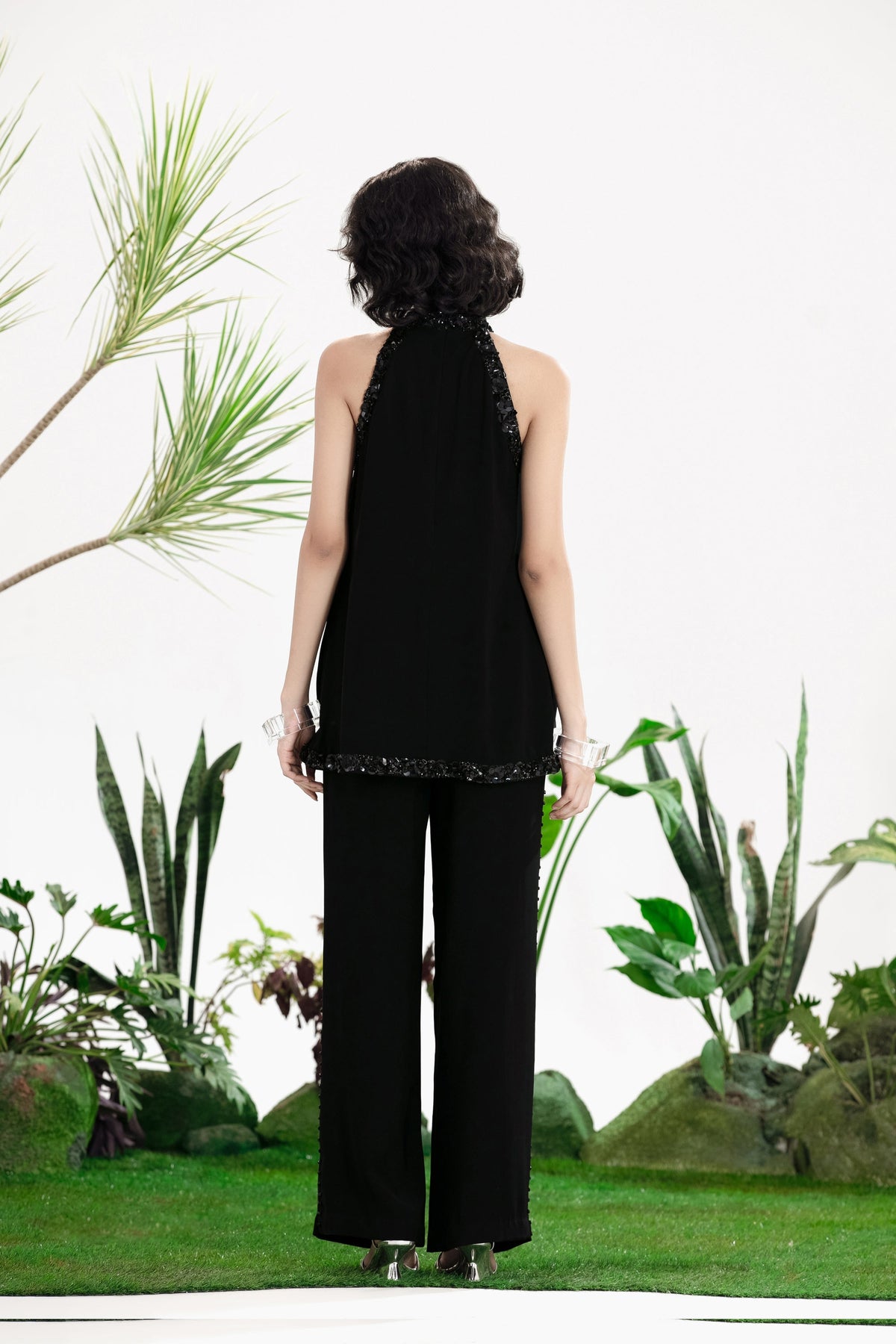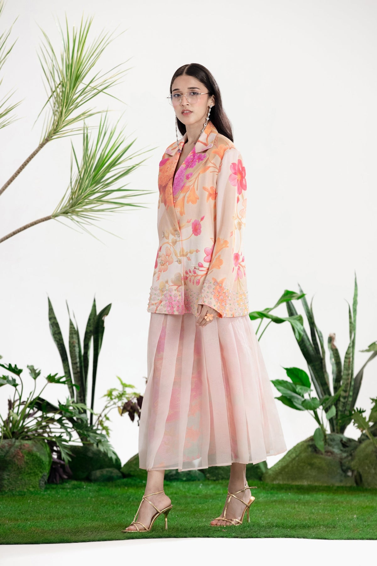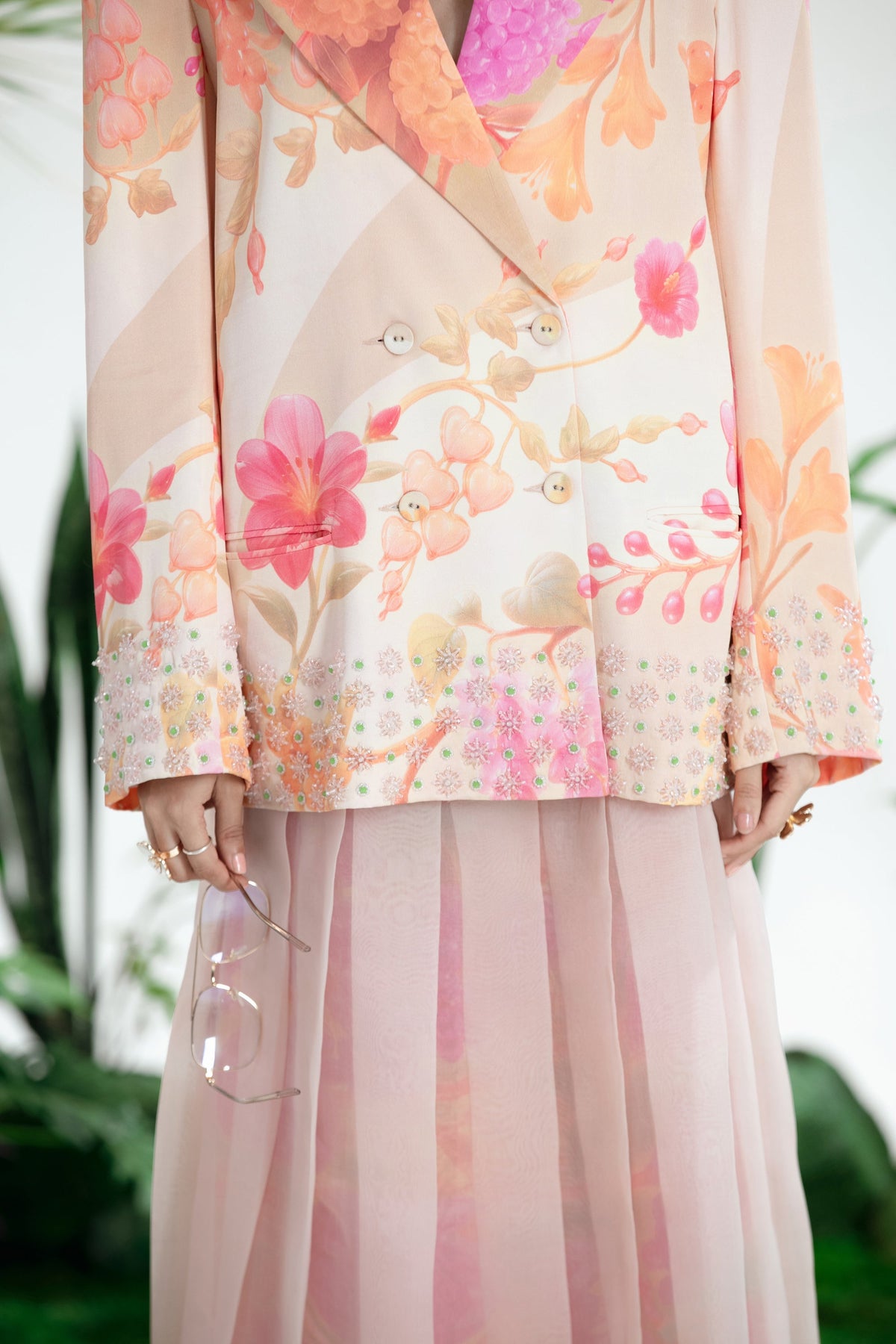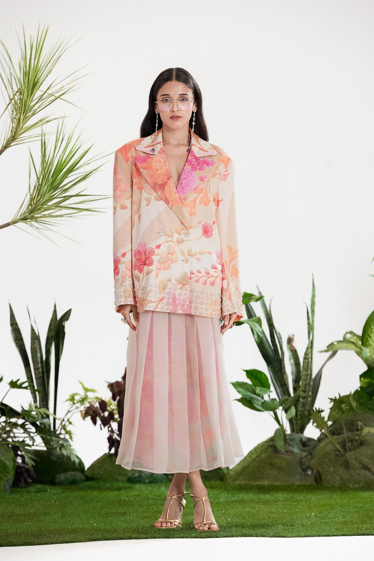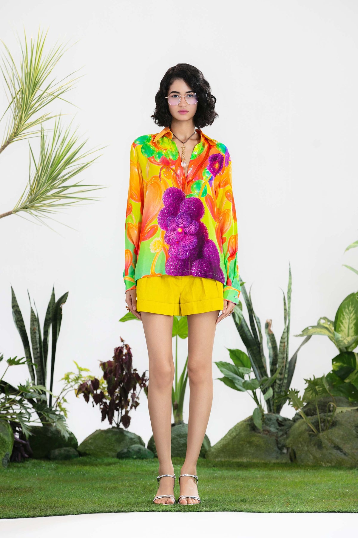 Elevate Your Wardrobe With This Statement Ensemble Featuring An Oversized Black Blazer Paired With Matching Satin-Linen Shorts. The Set Is Adorned With Bold Prints And Intricate Embroidery, Blending Contemporary Tailoring With Artisanal Detailing For A Striking, Fashion-Forward Look. Layered Underneath, A Playful Cow-Print Poplin Shirt Adds Contrast And Personality, Making The Outfit Perfect For Stylish Streetwear, Casual Events, Or Standout Occasions. A Versatile, Eye-Catching Set That Balances Structure, Artistry, And Playful Charm.
