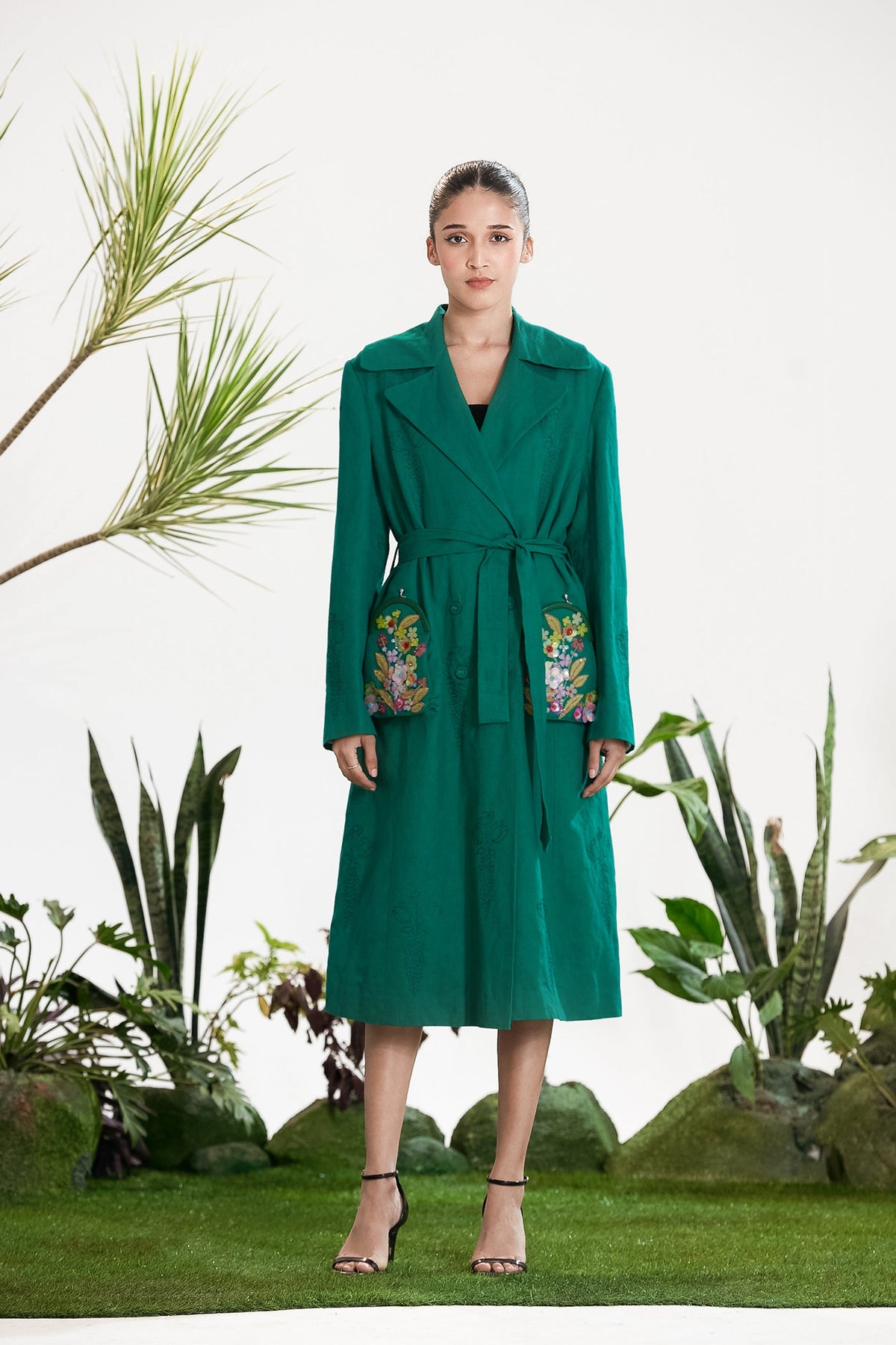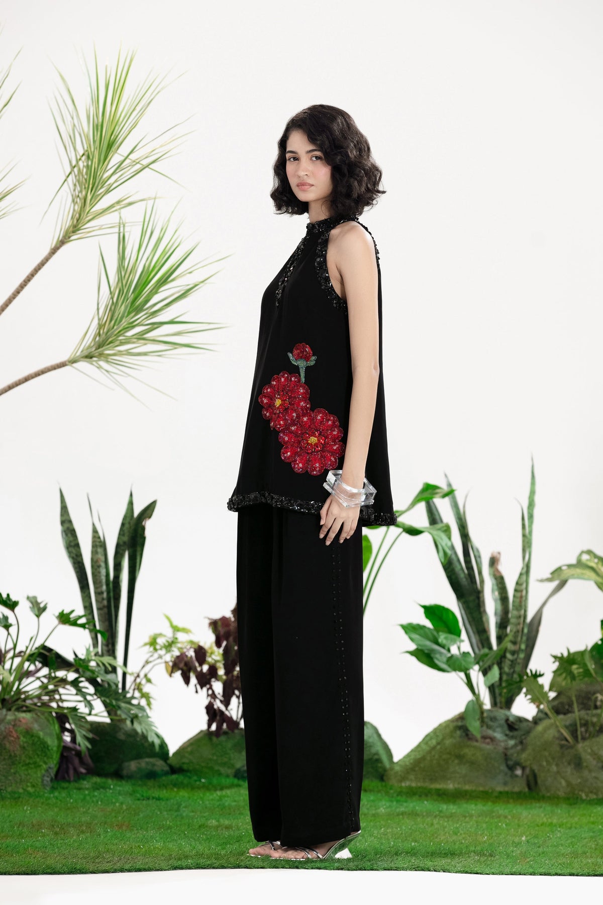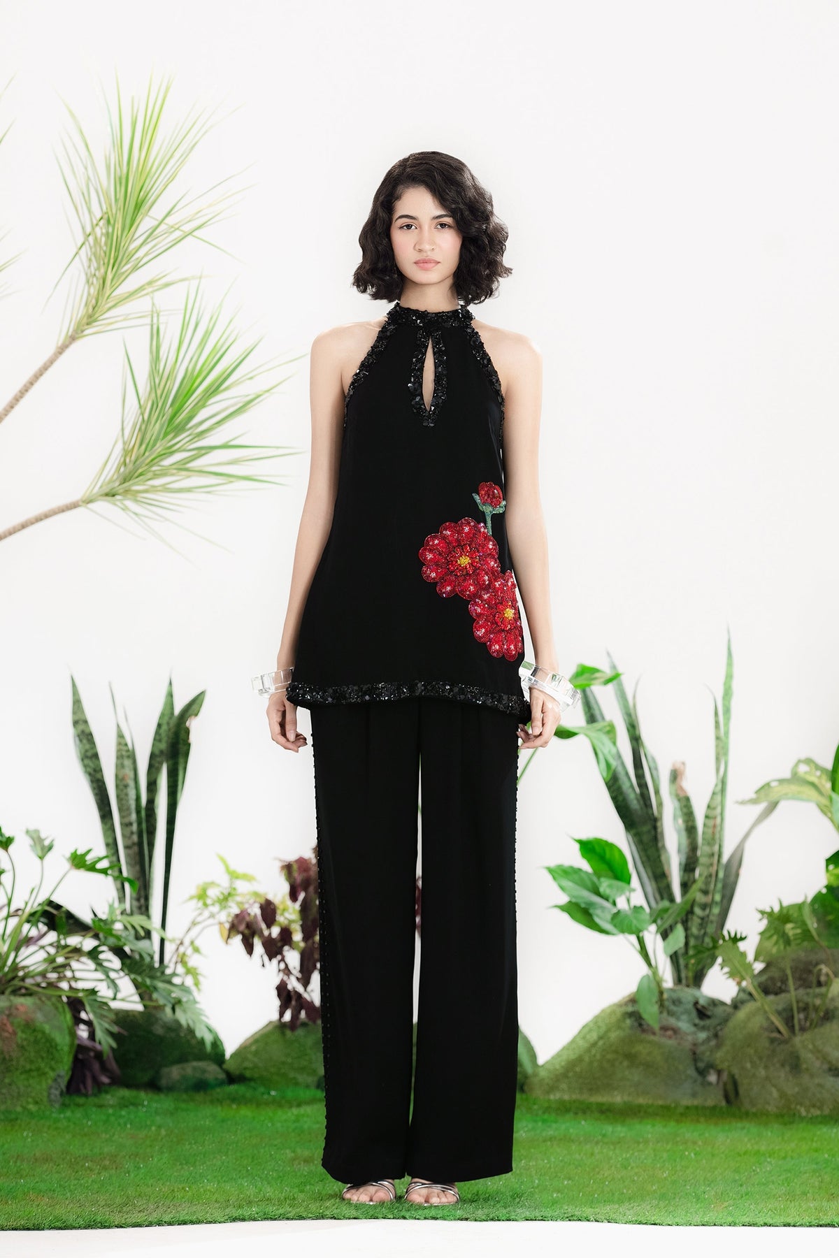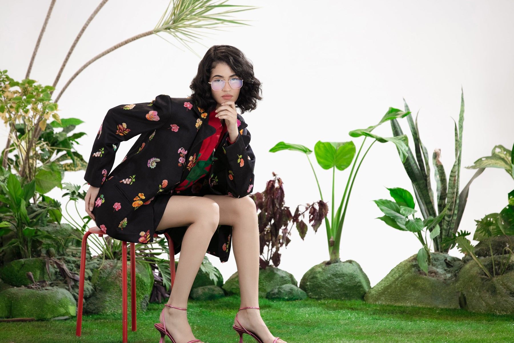 Elevate Your Wardrobe With This Statement Ensemble Featuring An Oversized Black Blazer Paired With Matching Satin-Linen Shorts. The Set Is Adorned With Bold Prints And Intricate Embroidery, Blending Contemporary Tailoring With Artisanal Detailing For A Striking, Fashion-Forward Look. Layered Underneath, A Playful Cow-Print Poplin Shirt Adds Contrast And Personality, Making The Outfit Perfect For Stylish Streetwear, Casual Events, Or Standout Occasions. A Versatile, Eye-Catching Set That Balances Structure, Artistry, And Playful Charm.