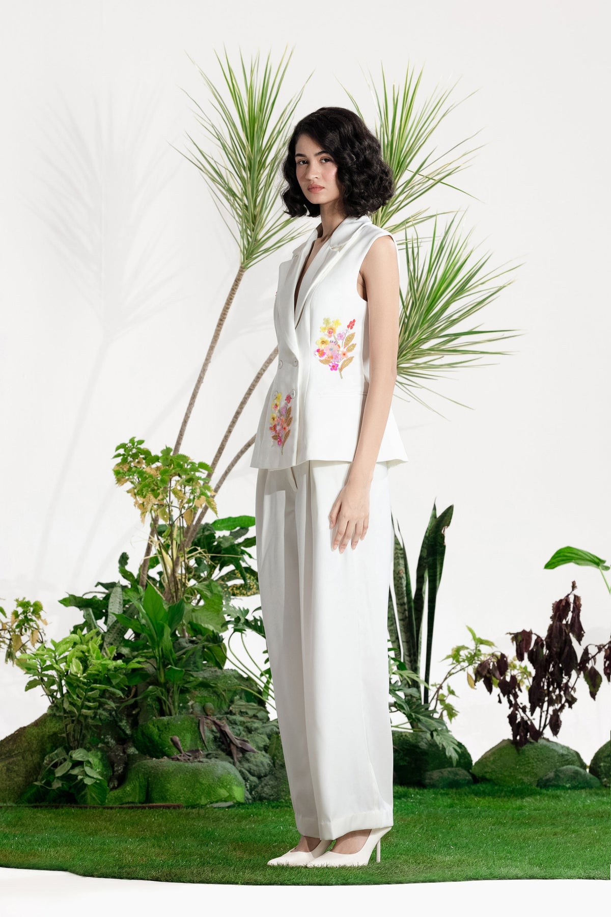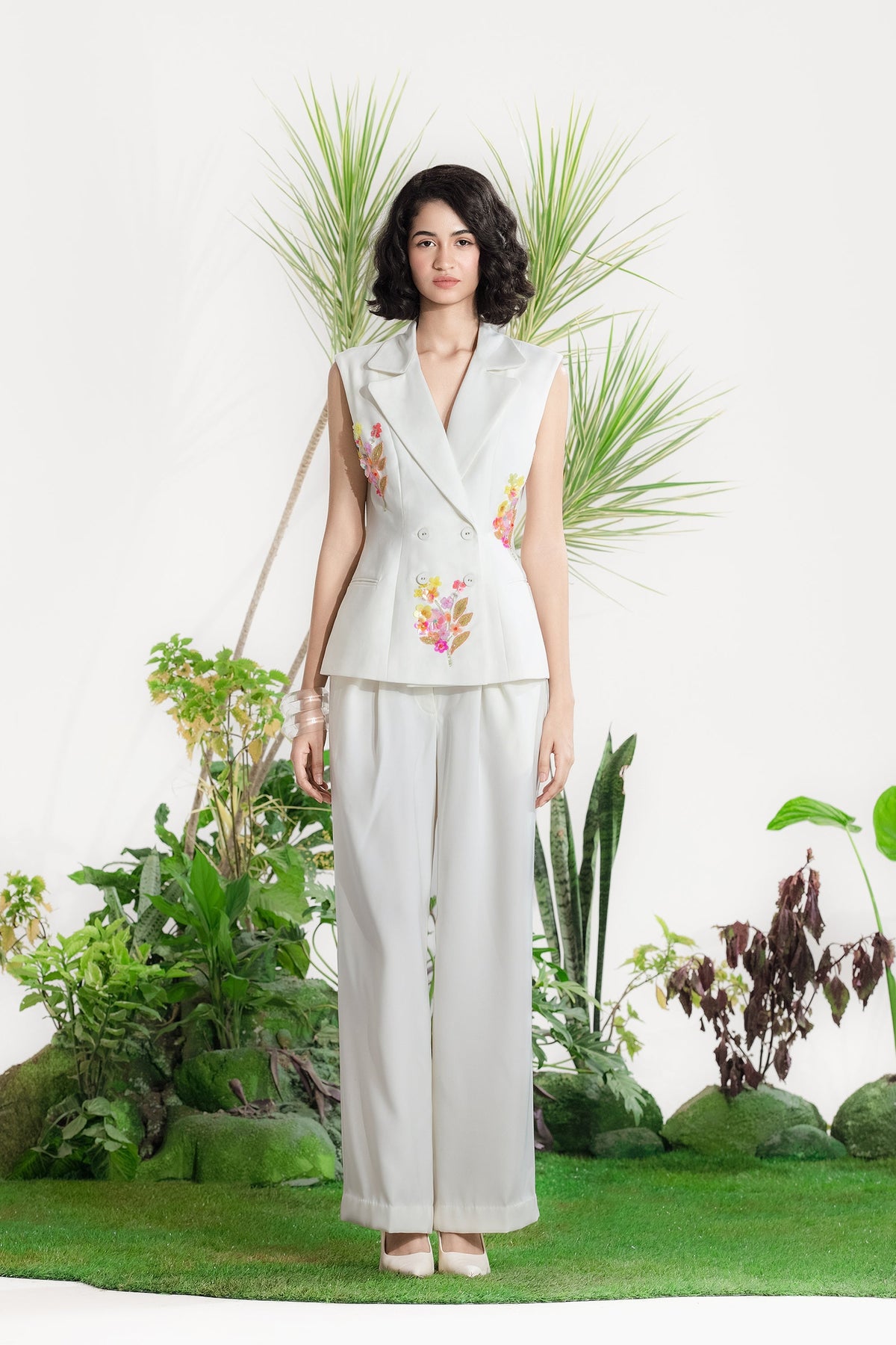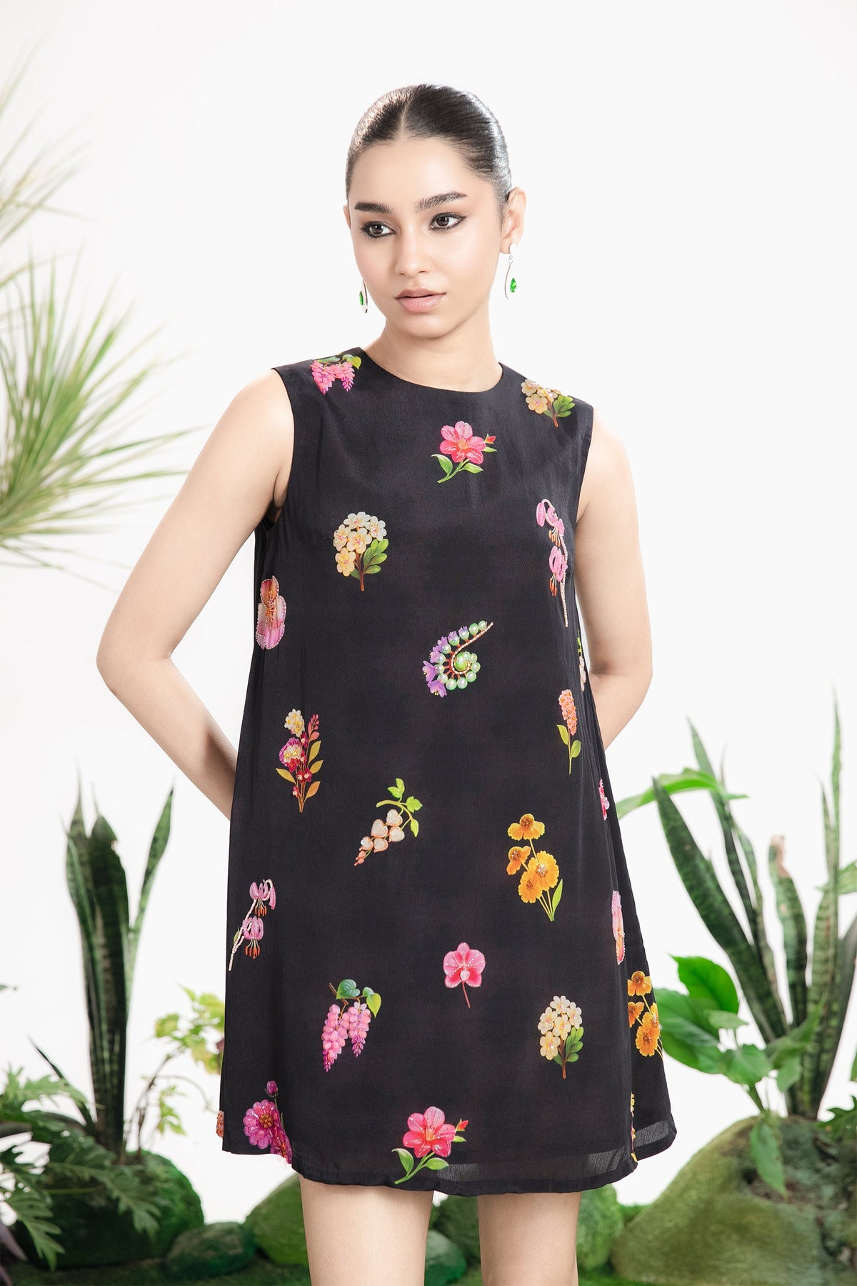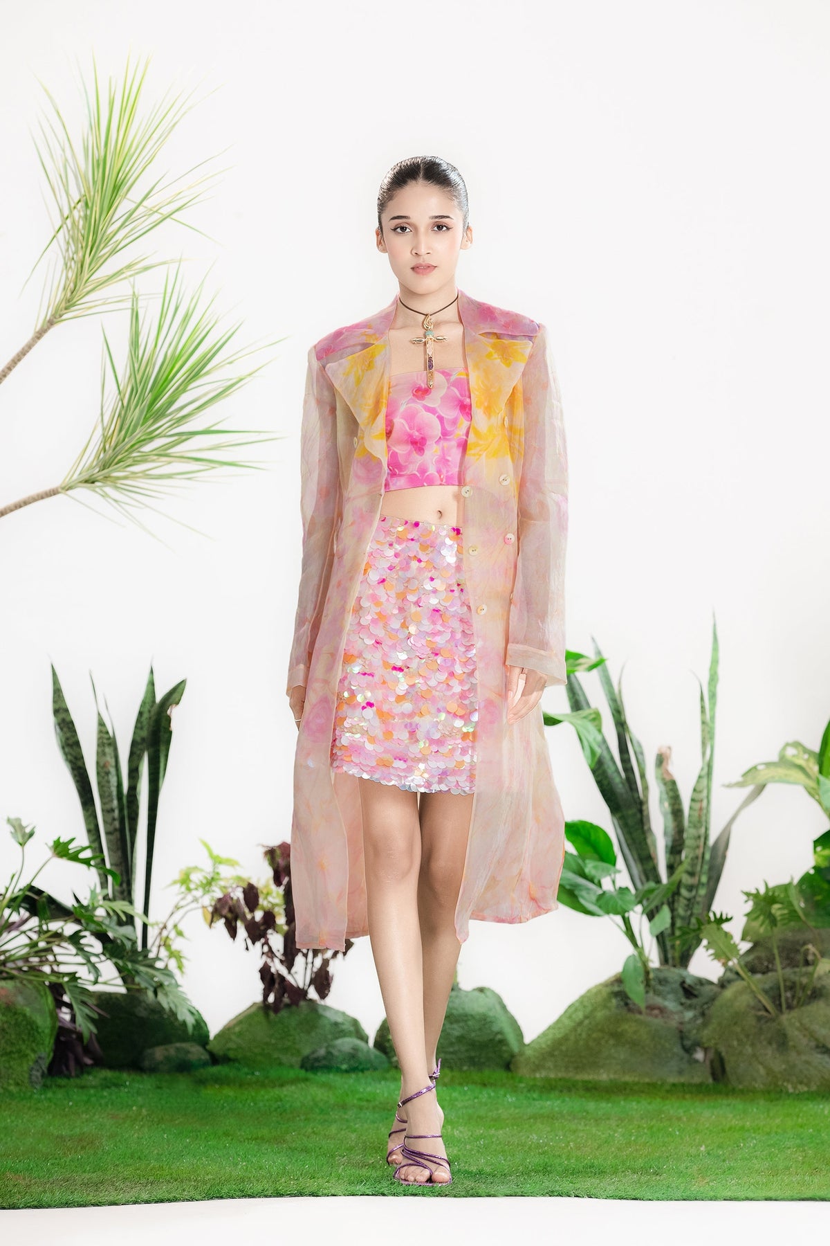 Elevate Your Wardrobe With This Statement Ensemble Featuring An Oversized Black Blazer Paired With Matching Satin-Linen Shorts. The Set Is Adorned With Bold Prints And Intricate Embroidery, Blending Contemporary Tailoring With Artisanal Detailing For A Striking, Fashion-Forward Look. Layered Underneath, A Playful Cow-Print Poplin Shirt Adds Contrast And Personality, Making The Outfit Perfect For Stylish Streetwear, Casual Events, Or Standout Occasions. A Versatile, Eye-Catching Set That Balances Structure, Artistry, And Playful Charm.