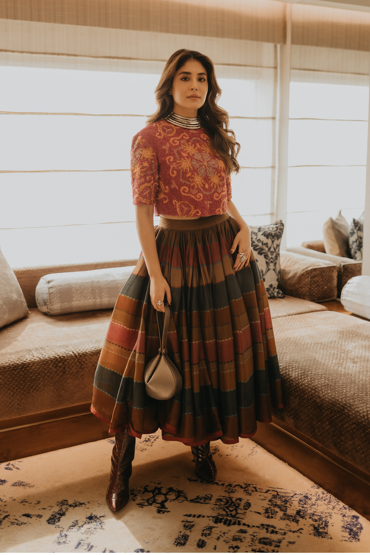 Ethos Of Indian Street In Kaleidoscopic Patterns And Embroidery, This Look Gathers The Quiet Power Of A Bindi And The Bold Swirl Of A Haryanvi Ghagra.